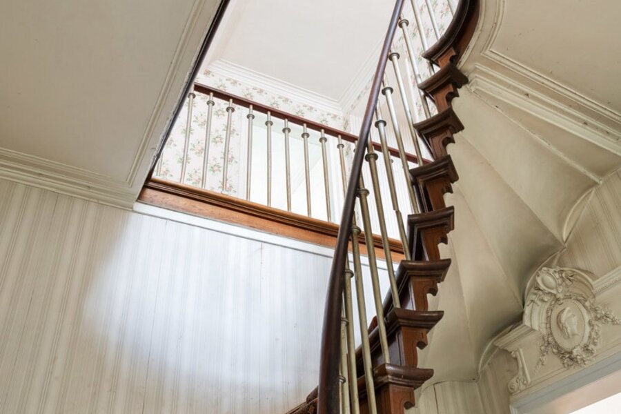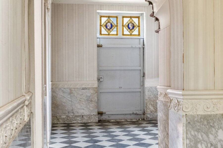 Hoofdinkom met majestueuze trappenhal centraal in de woning. Via deze inkom is een direct toegang naar de tuin. De verschillende salons met prachtige authentieke elementen en hoge plafonds werden rond deze centrale inkom ingetekend. Een tweede (diensten)inkom vindt u rechts in de woning. Deze geeft een rechtstreekse toegang naar de keuken, met bijkeuken en extra opslafgruimte.