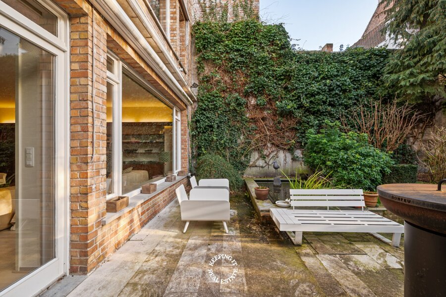 Op een boogscheut van de idyllische Groenerei en het groene Koningin Astridpark, discreet verscholen in het historische hart van Brugge, bevindt zich deze uitzonderlijke dubbele woonst met een zeldzame combinatie van ruimte, licht en privacy. Een eigendom met karakter en geschiedenis, waar authenticiteit en potentieel elkaar moeiteloos vinden.