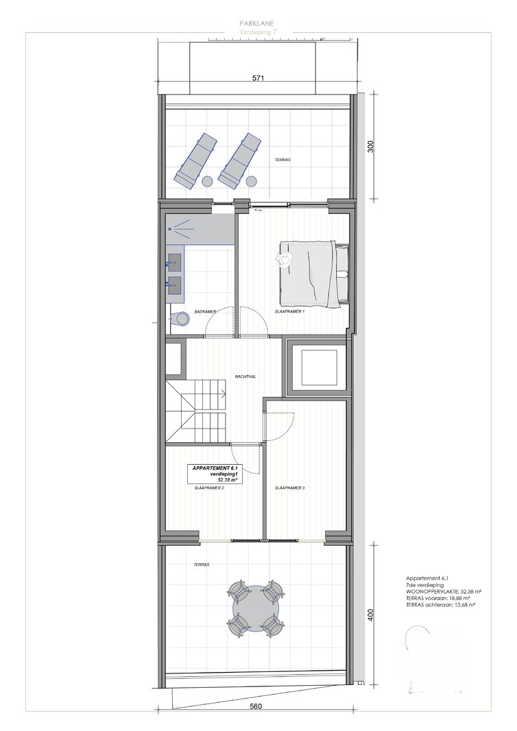 Res. Park Lane Nieuwbouw Penthouse met 3 slaapkamers op de 6 de 7 de V in de Rogierlaan 55 te Oostende. Rogierlaan 55 bus 0601, 8400 Oostende