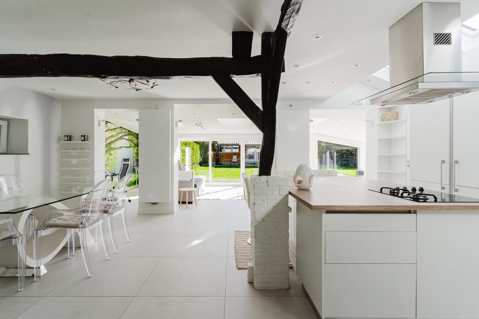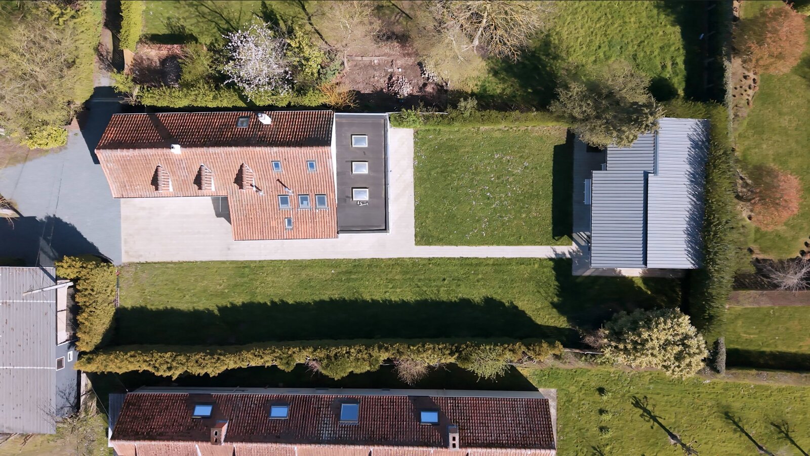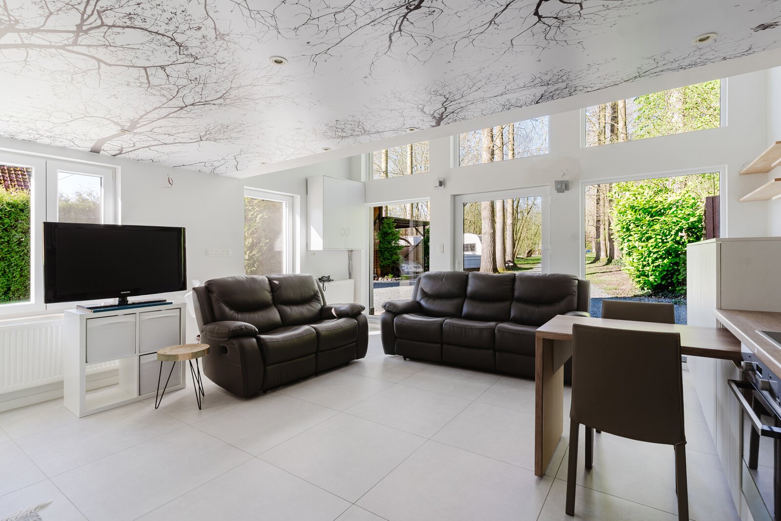 Cette villa de campagne d'une surface habitable de 248 m² vous accueille avec un espace de vie lumineux et une cuisine ouverte. De grandes baies vitrées laissent entrer une abondance de lumière naturelle et offrent une belle vue sur le jardin. À côté se trouve un deuxième espace de vie convivial avec une arrière-cuisine pratique.