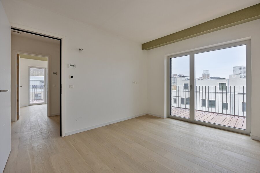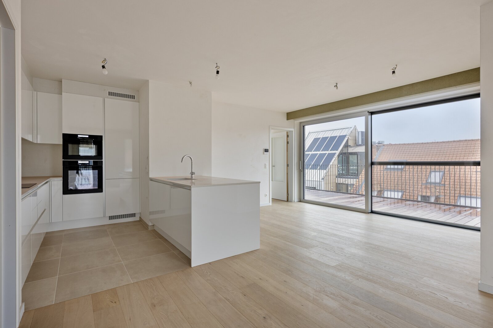 Nieuwbouw penthouse met ruime leefruimte die via schuiframen toegang geeft tot het grote terras met panoramisch zicht. Verder zijn er 2 slaapkamers met badkamer of doucheruimte, dressing , volledig ingerichte open keuken, gastentoilet en berging,