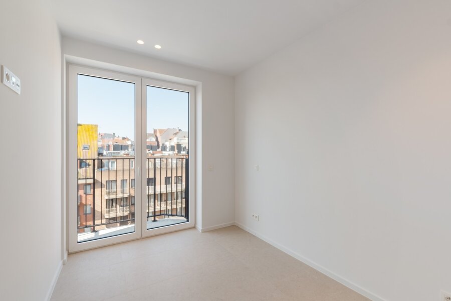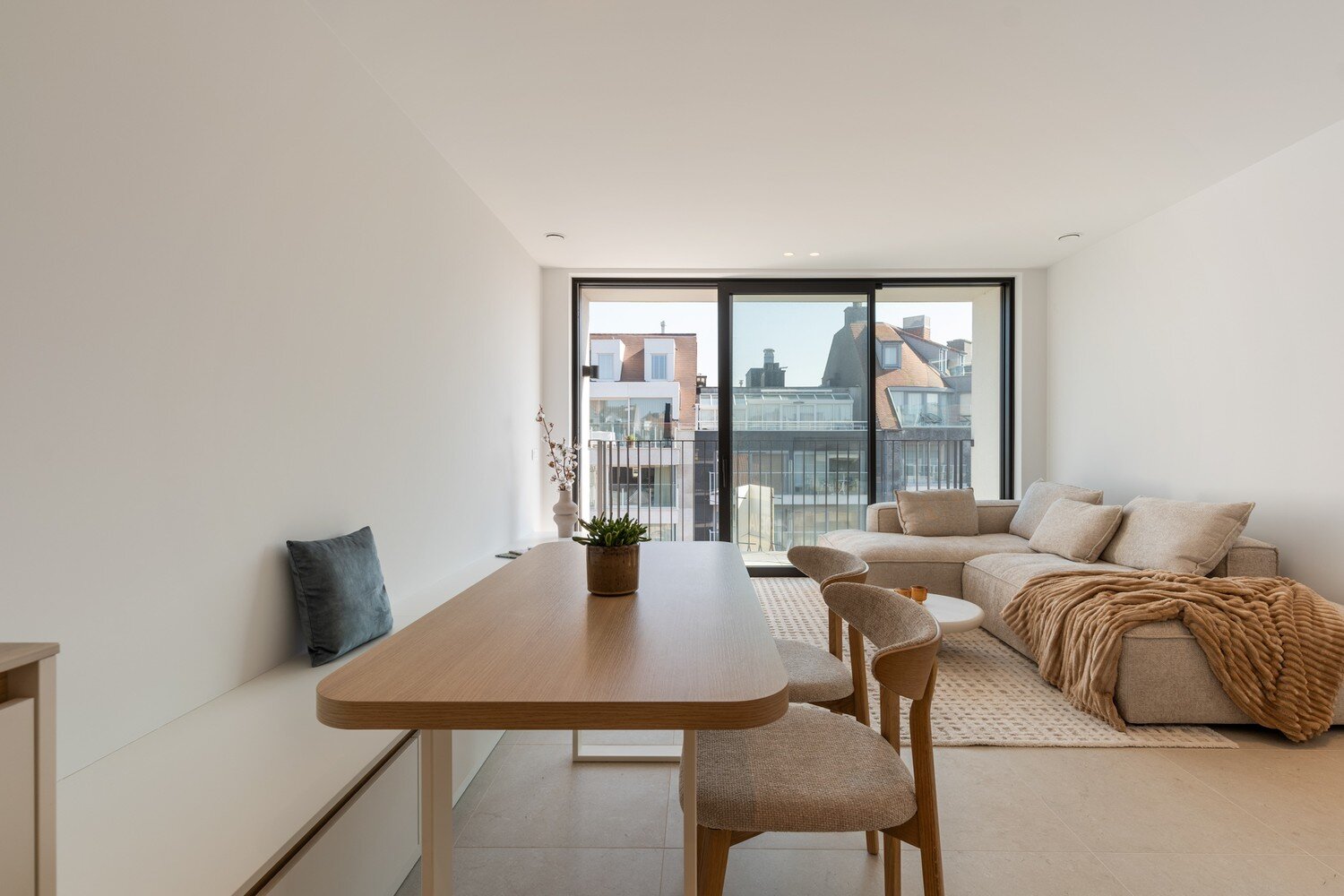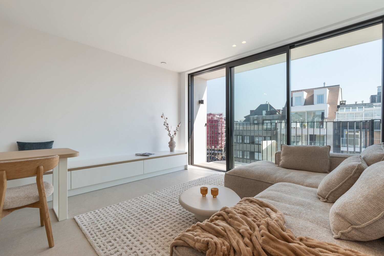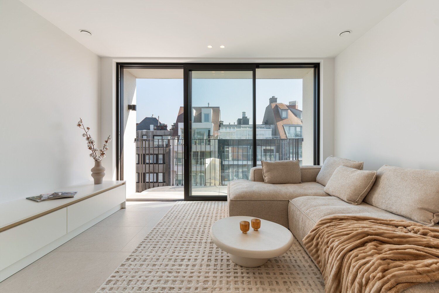 Stijlvol nieuwbouwappartement op topligging in Knokke met vrij zicht over het Van Bunnenplein en de zee.