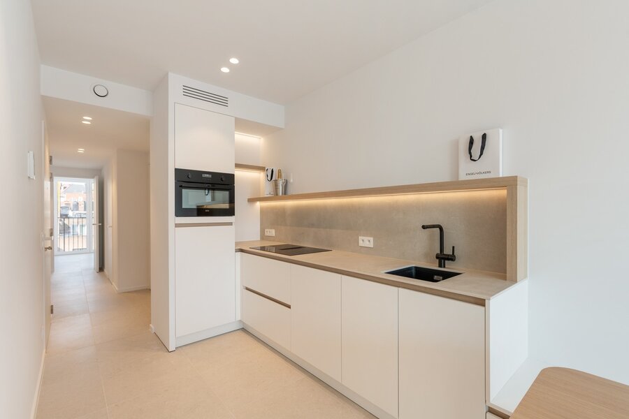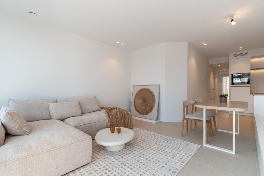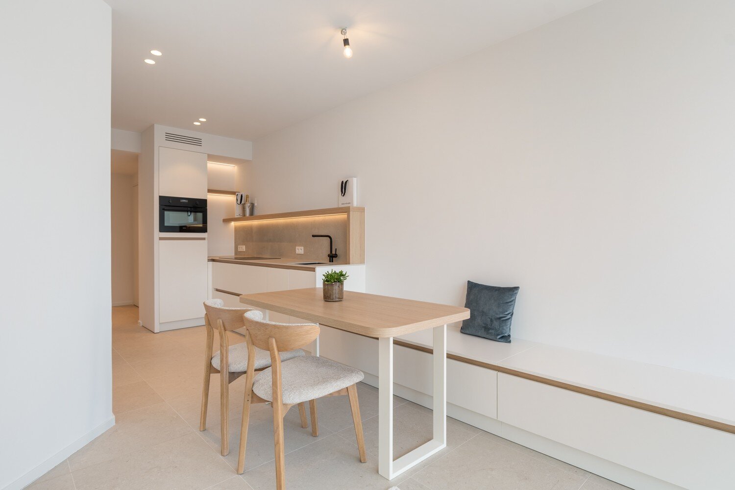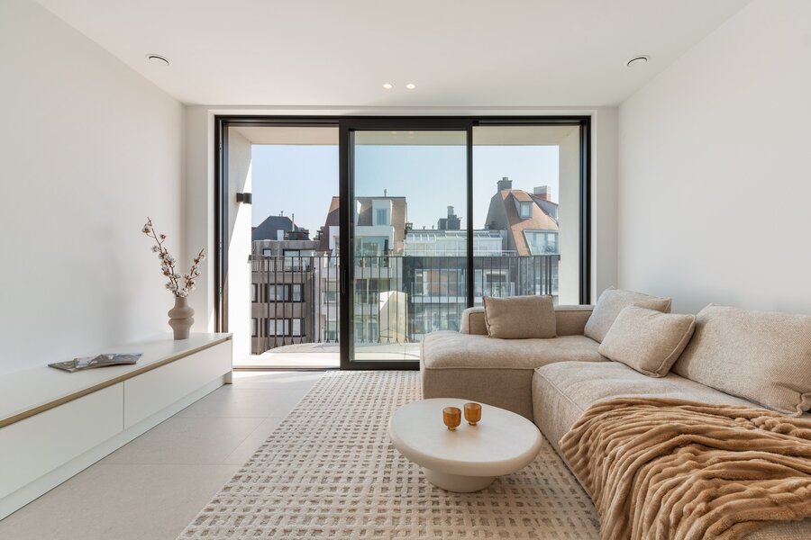 In het centrum van Knokke bevindt zich dit luxueus afgewerkte nieuwbouwappartement, waar hoogwaardige materialen en een doordachte indeling samenkomen in een stijlvolle en comfortabele woonomgeving.