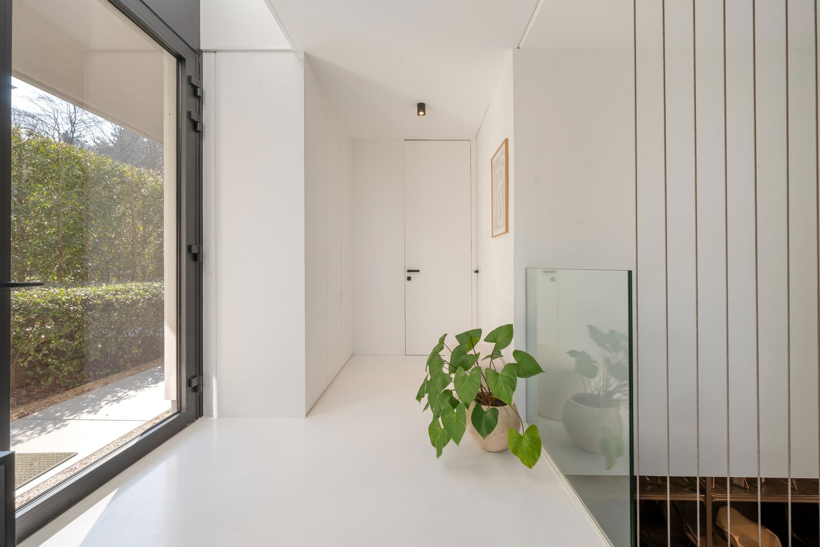 En passant par le hall d'entrée sur le côté de la villa, vous entrez dans une maison où la lumière et l'espace sont au centre de l'attention. Le hall d'entrée dispose d'un WC séparé et d'un débarras pratique, et donne accès aux espaces de vie chaleureux.