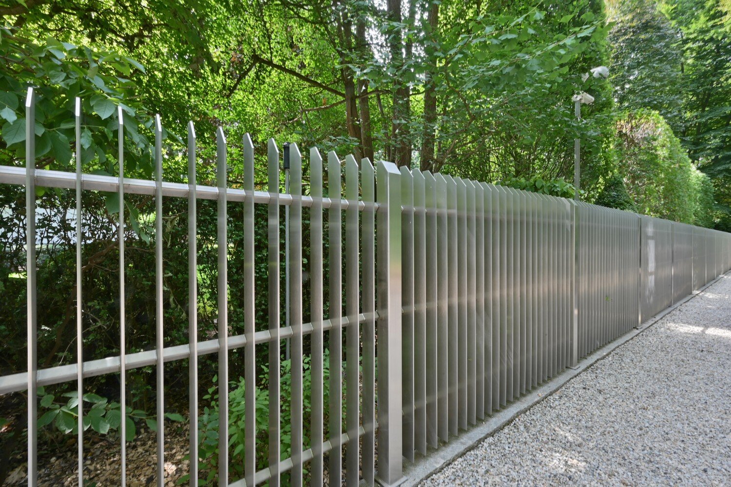 Het domein is volledig omheind en voorzien van een automatische poort. Aan de straatzijde voorzien van een 80 m lange design RVS (inox) hekwerk met een geautomatiseerde schuifpoort. De volwassen parktuin, volledig omringd door vele bijzondere botanische bomen op leeftijd, is uitzonderlijk verzorgd en aangelegd met Belgische hardsteenpaden, diverse terrassen en een stijlvol cederhouten tuinhuis.