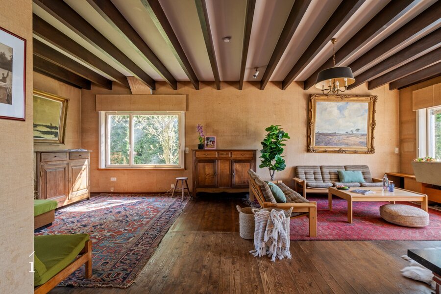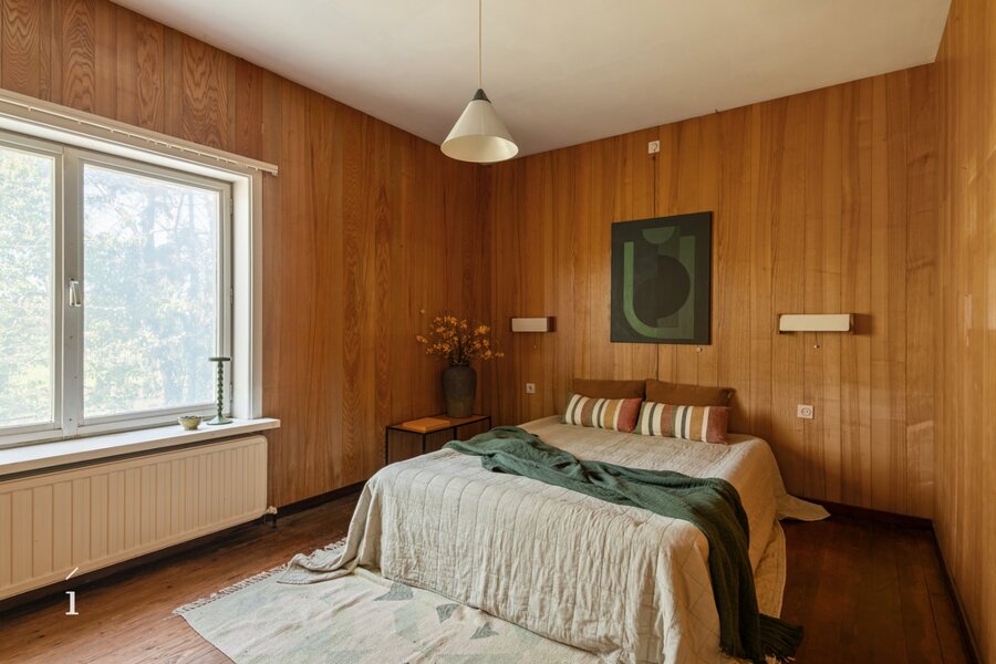 De huidige woning werd bovendien mooi boven het niveau van de Leie ingeplant, wat zorgt voor bijzondere perspectieven over het water, de tuin en het achterliggende groen. Precies die inplanting versterkt de beleving van de site en onderstreept de zeldzame relatie tussen woning, tuin en rivier.