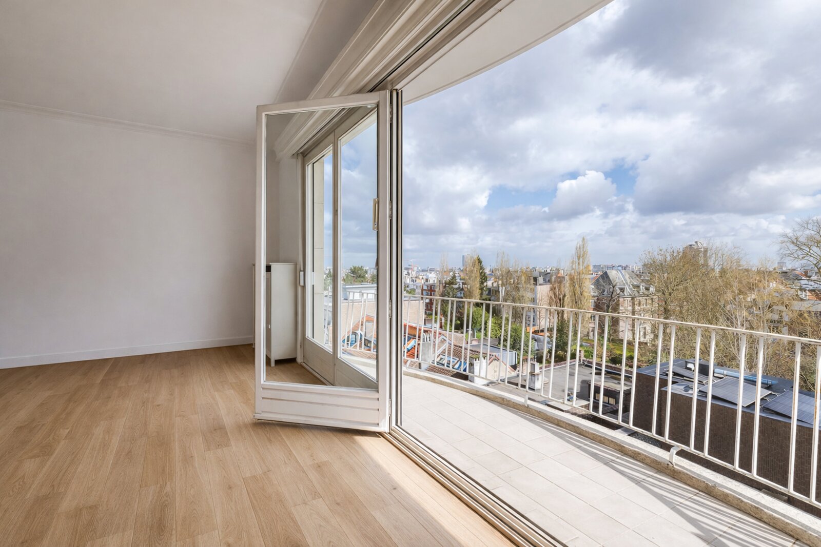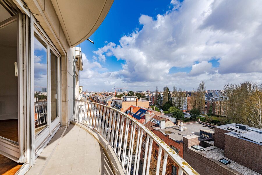 L’appartement se compose de réceptions lumineuses, prolongées par un balcon en façade avant, d’une cuisine séparée, ainsi que de deux belles chambres se partageant une salle de bains complète. Une petite terrasse arrière complète les espaces extérieurs.