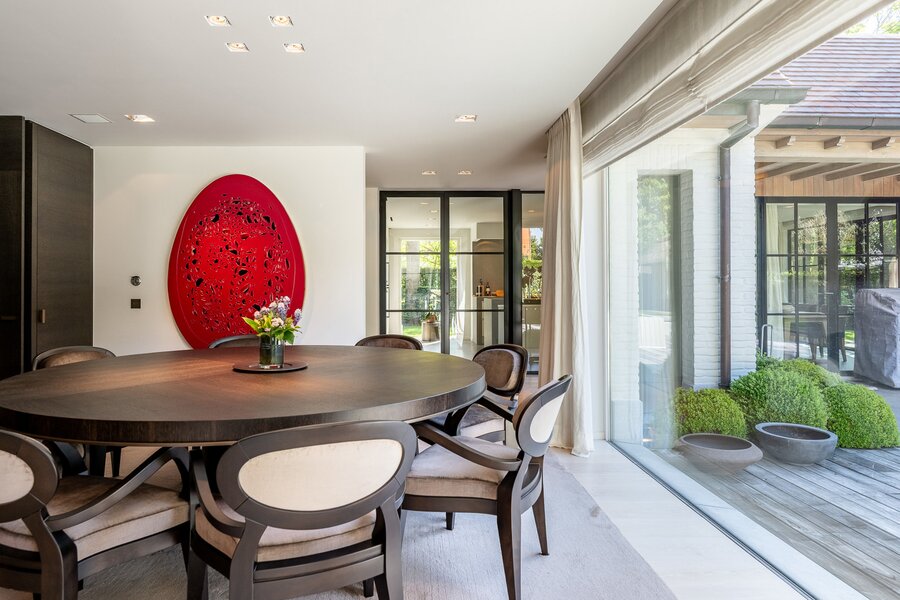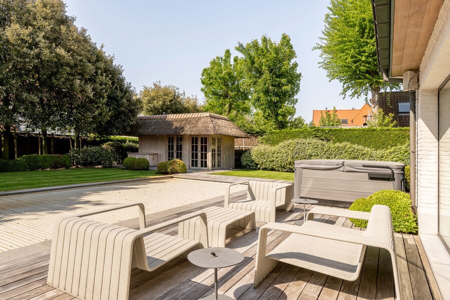 Superbe propriété avec piscine, située à quelques pas de l'église des Pères Dominicains, au cœur du Zoute. La plage est également à courte distance. Composition: hall d'entrée avec vestiaire et toilettes invités. Bureau avec armoires encastrées et vue sur le jardin. Grand salon avec cheminée à gaz. Deuxième salon. Salle à manger lumineuse attenante à la cuisine spacieuse, entièrement équipée, avec une grande cave à vin. Buanderie pratique. Garage double et local technique. À l'étage : grand palier avec coin salon. Chambre principale avec grande salle de bain équipée de chauffage au sol (baignoire, grande douche à l'italienne, lavabo). Toilette séparée. Dressing attenant. 2ème chambre/bureau. 3ème chambre complète avec armoires encastrées et salle de douche. 4ème chambre à coucher avec grande terrasse orientée plein sud, bureau, armoires encastrées et salle de douche avec toilette. Jardin ensoleillé aménagé avec piscine et jacuzzi. Pool house avec hammam, douche et toilette séparée. Stationnement pour minimum 4 voitures. Portail automatique. Visite volontiers après rendez-vous en un de nos bureaux.