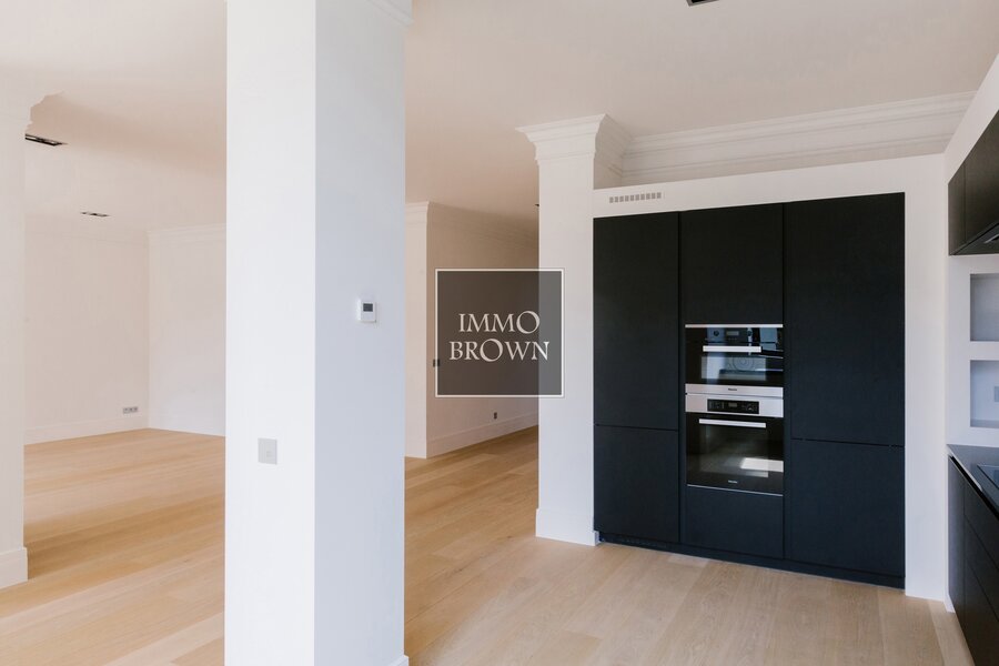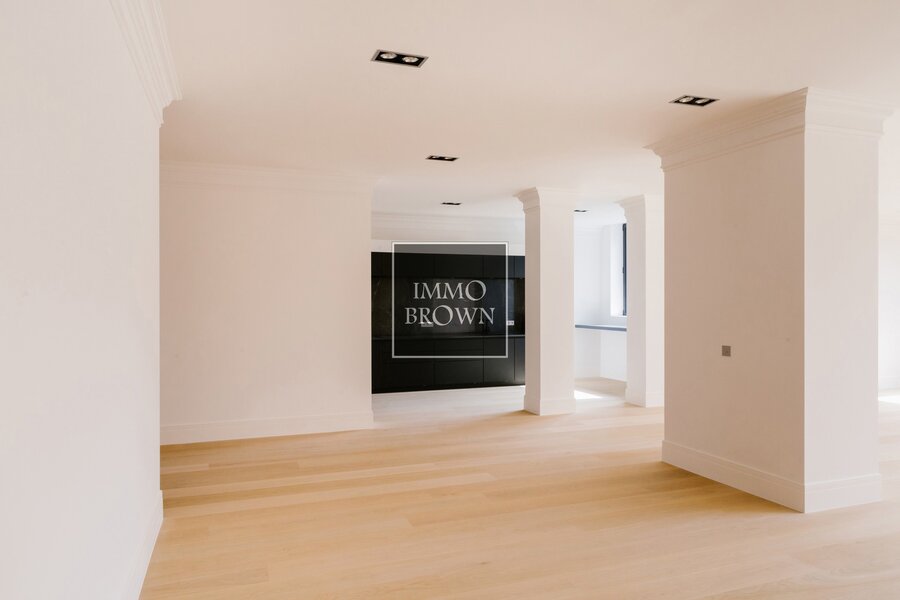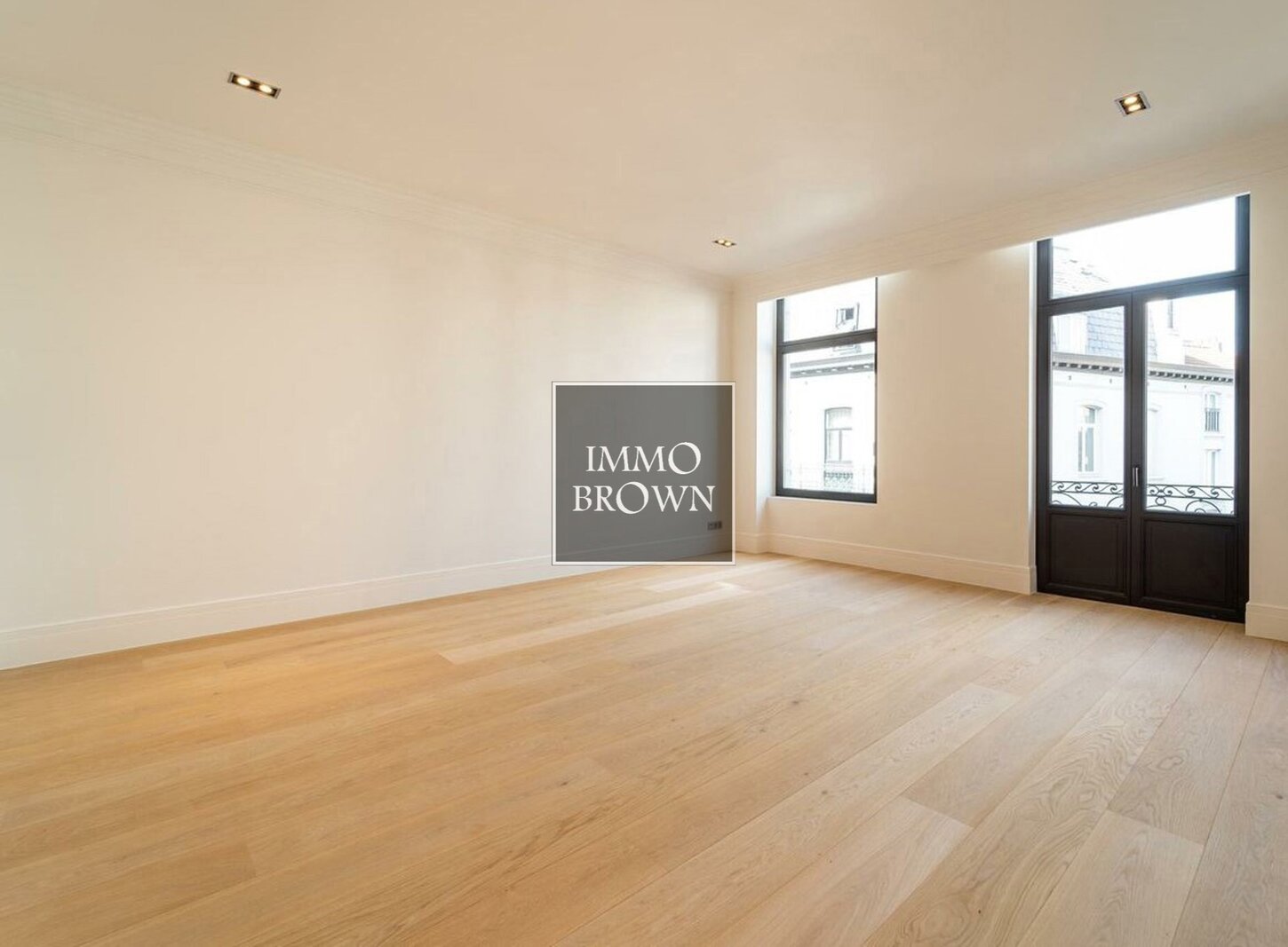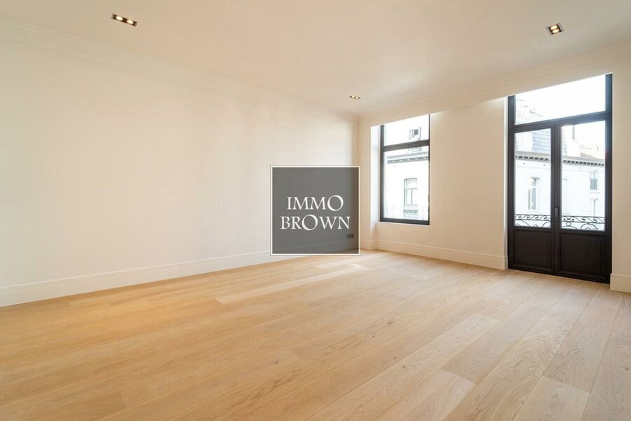 Derrière la magnifique façade d’un ancien hôtel de maître, agréable appartement de 221m² à vendre, entièrement rénové et restauré et offrant des finitions de standing, à deux pas de l’Avenue Louise.