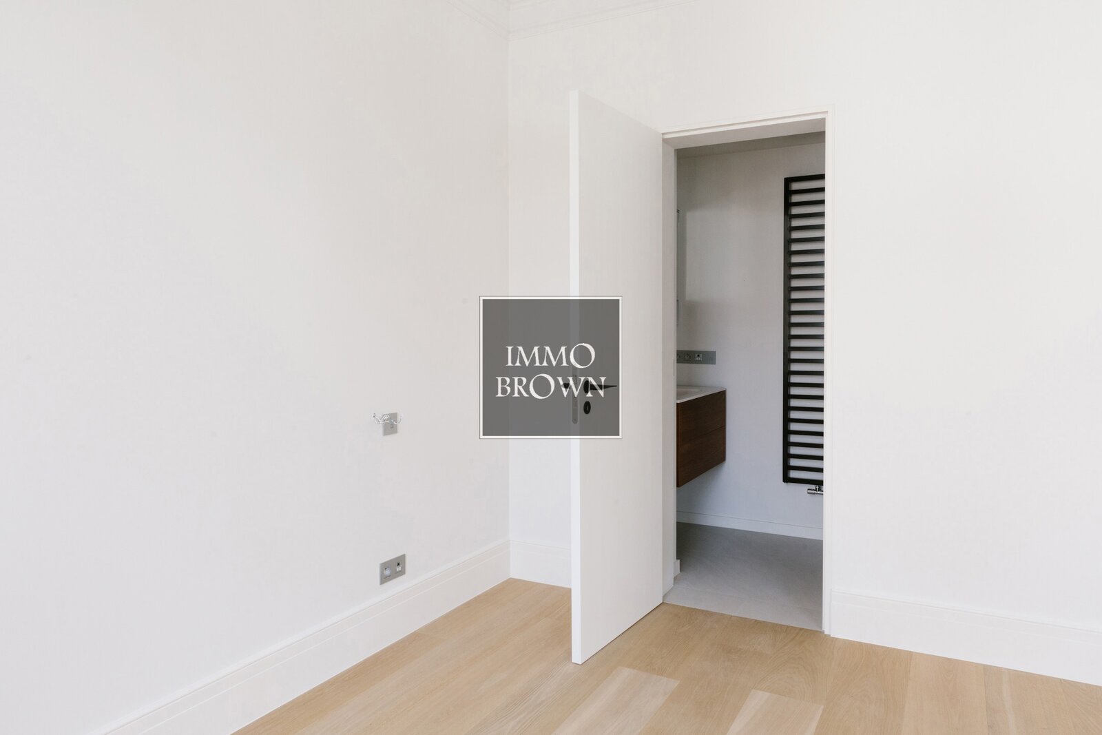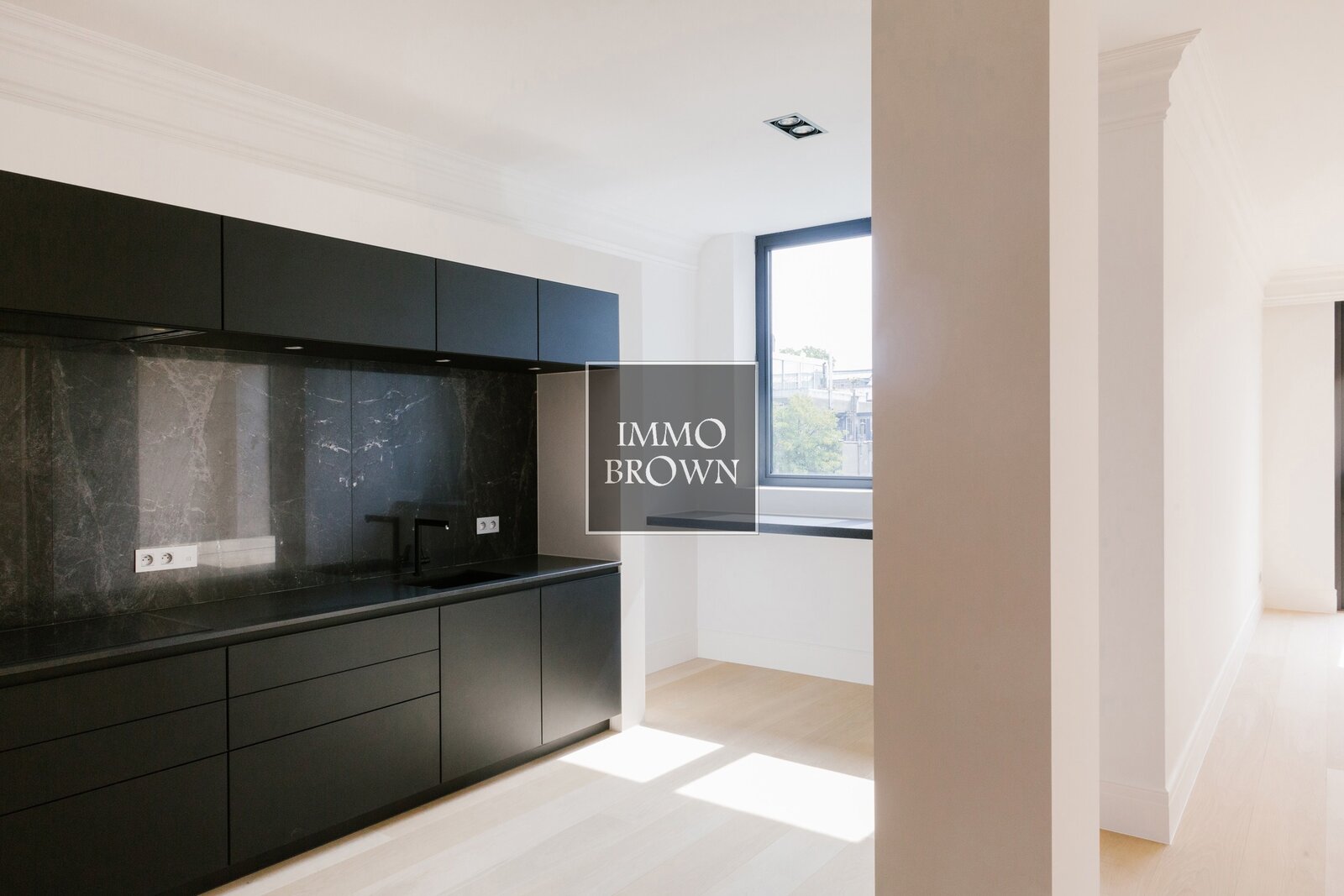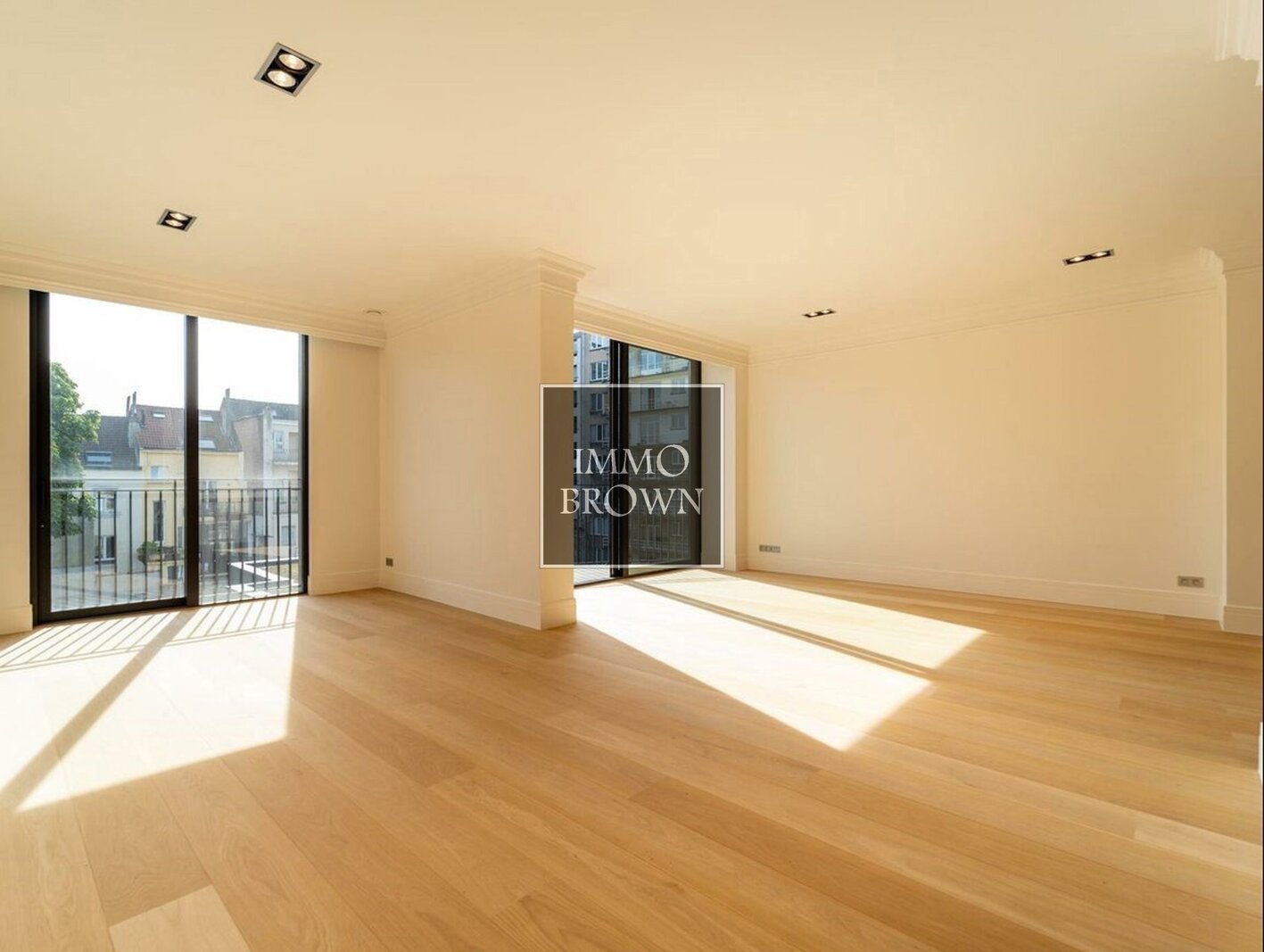 Derrière la magnifique façade d’un ancien hôtel de maître, agréable appartement de 221m² à vendre, entièrement rénové et restauré et offrant des finitions de standing, à deux pas de l’Avenue Louise.