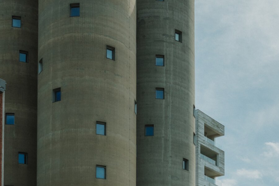 Vue sur le canal et chambres rondes en siloloft par Arjaan De Feyter