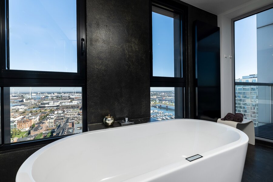 Penthouse avec bien-être et vue magnifique sur la skyline prisée de l'île d'Anvers.