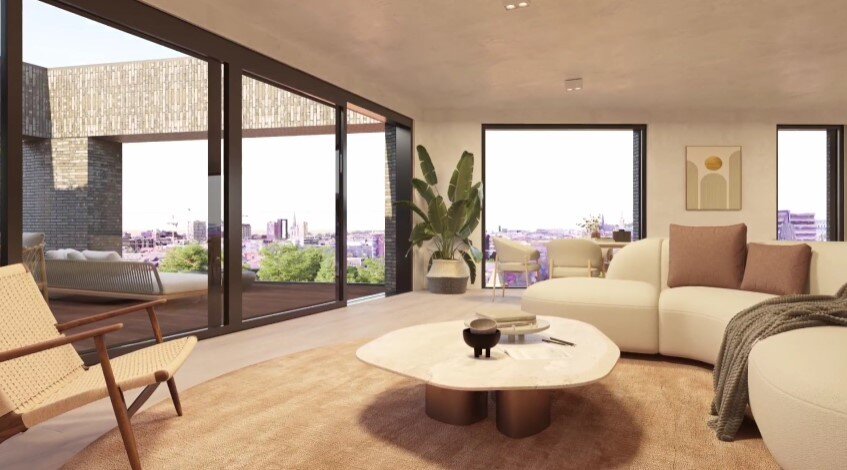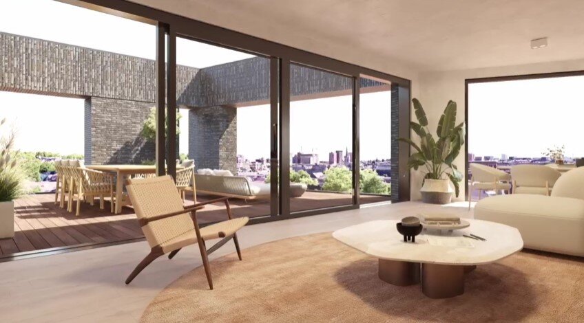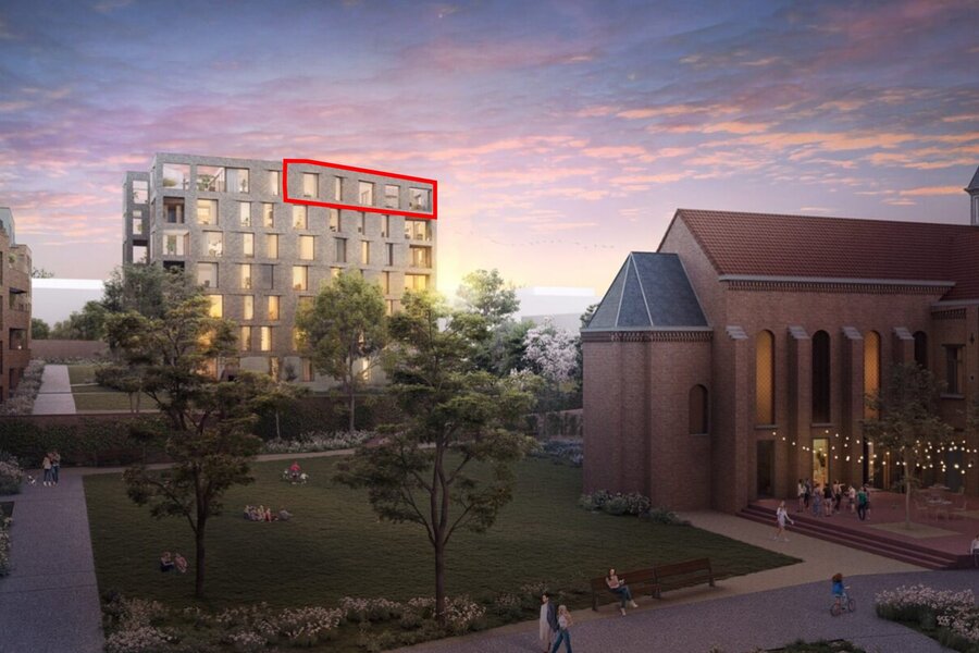 Zeer luxueuze penthouse van 213 m² op de 6e verdieping van een iconisch residentieel gebouw in het hart van Leuven, grenzend aan een riante parktuin. Dit gebouw maakt deel uit van ‘Burenberg’, een gloednieuwe stadsbuurt langs de Kaboutermansstraat in het centrum van Leuven, grenzend aan een historisch klooster dat een nieuwe invulling krijgt. De penthouse geniet van 2 zeer royale terrassen (in totaal 78 m²) en maar liefst 27 lopende meter glaspartijen met knappe zichten op de parktuin. Indeling penthouse: zeer ruime inkom met toilet en annex bureauruimte die toegang geeft tot een lichtrijke leefruimte met ramen in twee zonrichtingen en aansluitend terras. Royale leefkeuken met kookeiland en ruime berging. Via de hal bereikt u 3 ruime slaapkamers waarvan 2 met dressing. Twee ruime badkamers met bad en douche, naast een extra gastentoilet. Parkeren gebeurt veilig ondergronds. Oplevering eind 2025. Meer weten? Bel naar 0477 80 61 11 of surf naar burenberg.be.