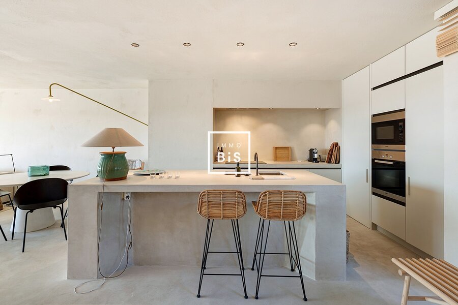 Un salon lumineux donnant sur la spacieuse terrasse, vous permettant de profiter du soleil et de la magnifique vue sur les environs. Que vous souhaitiez vous détendre au soleil ou dîner sous les étoiles, cette terrasse offre le cadre parfait pour chaque occasion.