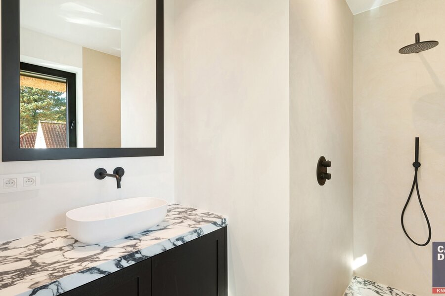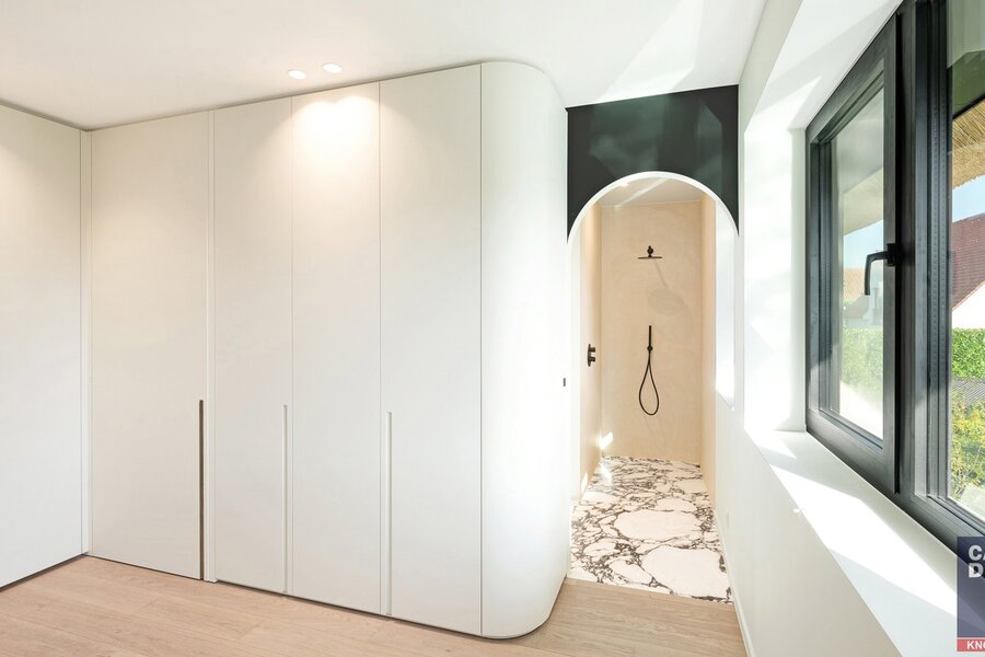 Composition: hall d'entrée avec vestiaire et toilette. Salon spacieux et lumineux avec feu au gaz. Salle à manger. Fantastique cuisine avec coin repas et accès à la terrasse couverte et au magnifique jardin. Au premier étage, nous trouvons la spacieuse chambre principale avec dressing et salle de bain. Puis 3 chambres plus spacieuses, chacune avec sa propre salle de bain. Garage et chambre froide. Stationnement extérieur pour plusieurs voitures.