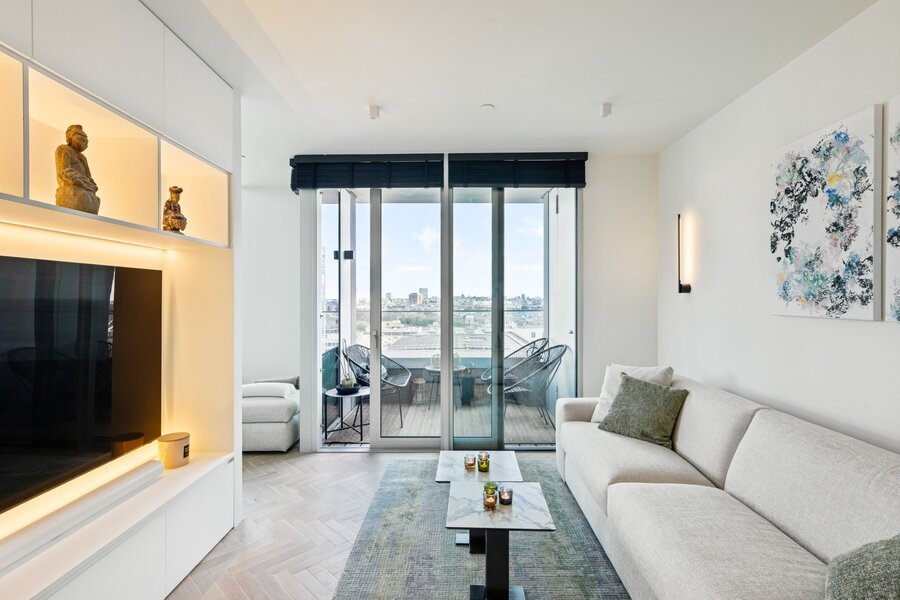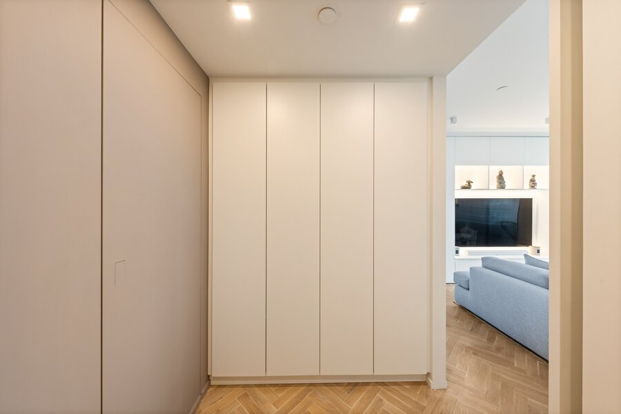 L'espace de vie lumineux se connecte parfaitement à la cuisine ouverte luxueusement aménagée, entièrement équipée avec les derniers appareils. De plus, l'appartement dispose de deux chambres à coucher complètes et de deux élégantes salles de bains, créant ainsi un équilibre parfait entre confort et intimité.