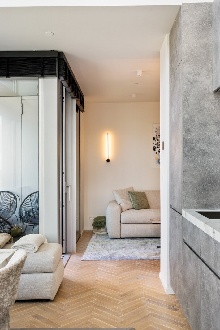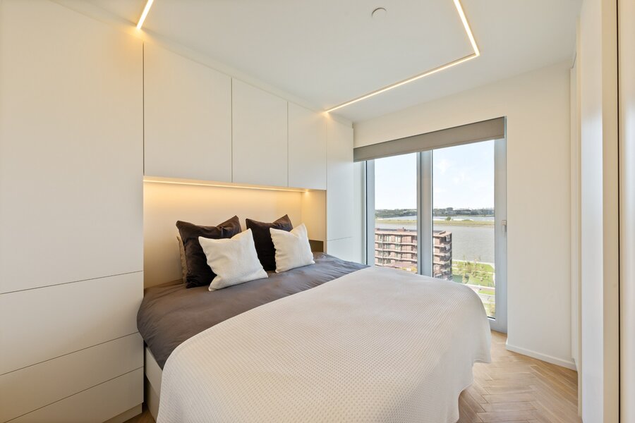 À l'intérieur, vous ressentez immédiatement l'atmosphère raffinée grâce à la récente rénovation haut de gamme, utilisant uniquement des matériaux de qualité et des finitions design. De grandes fenêtres apportent une abondance de lumière et intègrent au maximum la ville et l'Escaut dans l'espace de vie.