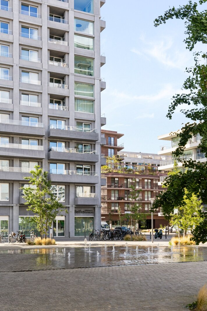 À l'extérieur, vous pourrez profiter de vues panoramiques uniques depuis les terrasses, avec des lignes de vue s'étendant de l'Escaut à la skyline d'Anvers. Une expérience rare, tant de jour que lors du coucher du soleil. Une cave est disponible et il est possible d'acheter deux places de parking dans le bâtiment.