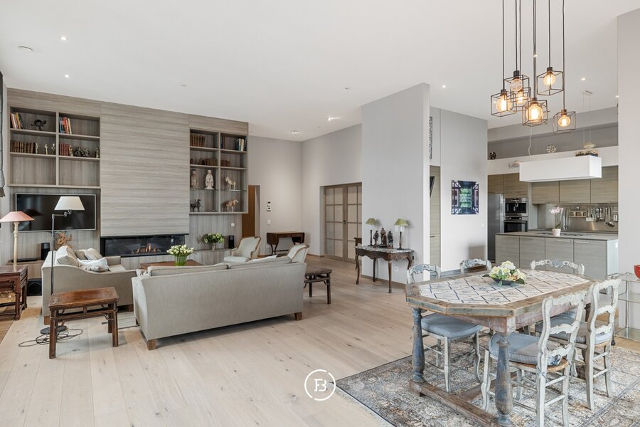 Grâce à ses hauteurs sous plafond impressionnantes et ses trois chambres spacieuses, dont deux avec salle de bain attenante, cette résidence offre une luminosité exceptionnelle et une sensation d’espace incomparable. Le vaste séjour avec cheminée au gaz, la salle à manger et la cuisine Bulthaup s’intègrent harmonieusement et témoignent de matériaux haut de gamme et d’un niveau de finition remarquable.