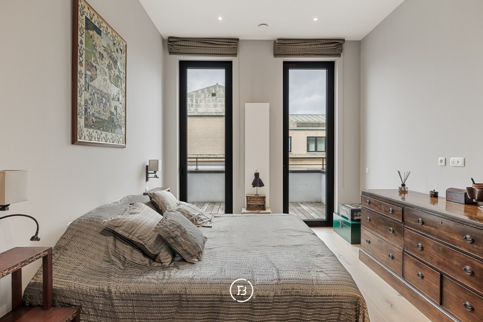Depuis le séjour comme depuis les chambres, deux grandes terrasses — dont une partiellement couverte — s’ouvrent sur la vie animée de la ville, offrant un espace paisible pour se détendre.