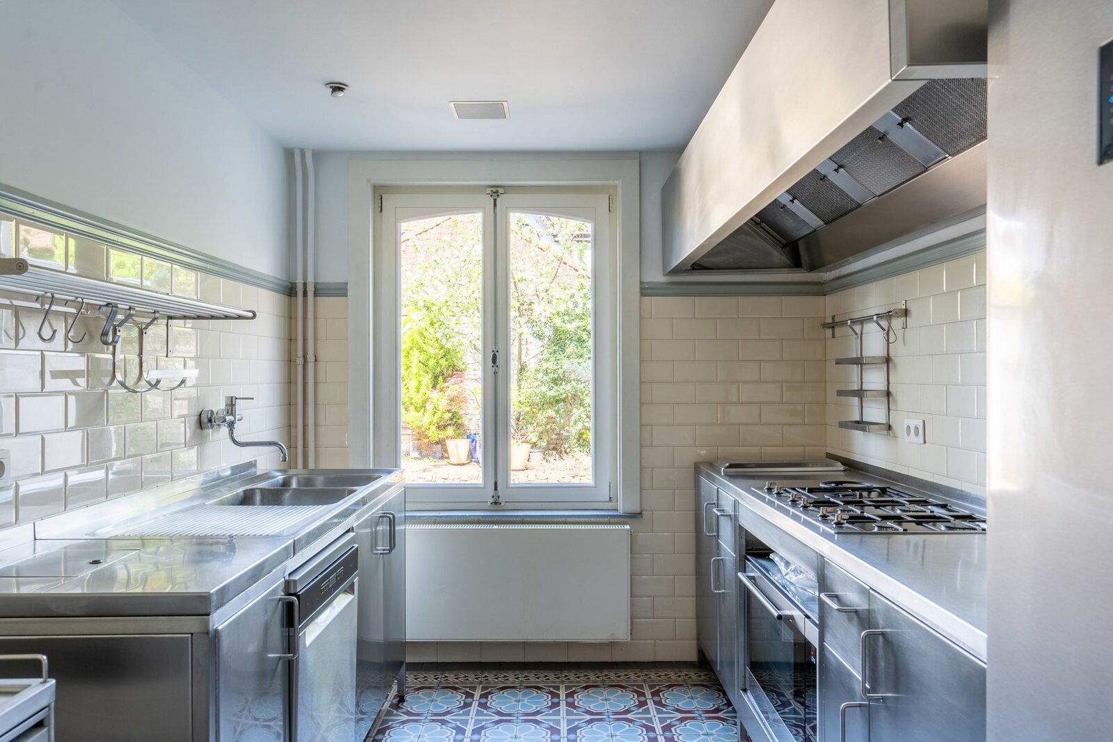 - Cuisine super-équipée +/- 12,5 m² (lave-vaisselle, taques au gaz, four, hotte, frigo, congélateur, mirco-ondes)(carreaux de ciment)