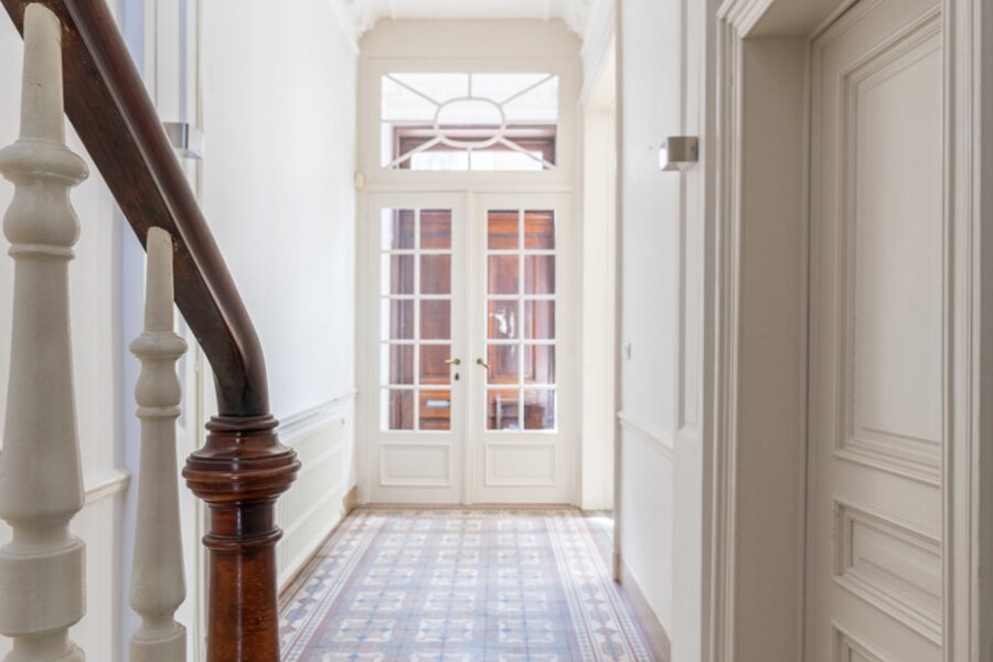 - Hall entrée +/- 15 m² (carreaux de ciment)