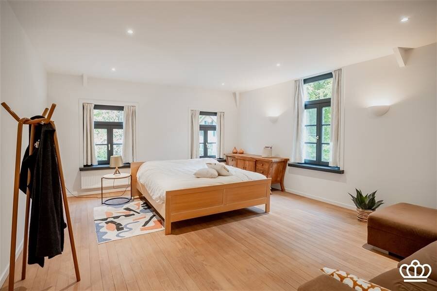 De natuurstenen trap leidt naar de nachthal die uitgeeft op vier ruime slaapkamers, elk voorzien van een eigen bad- of douchekamer.