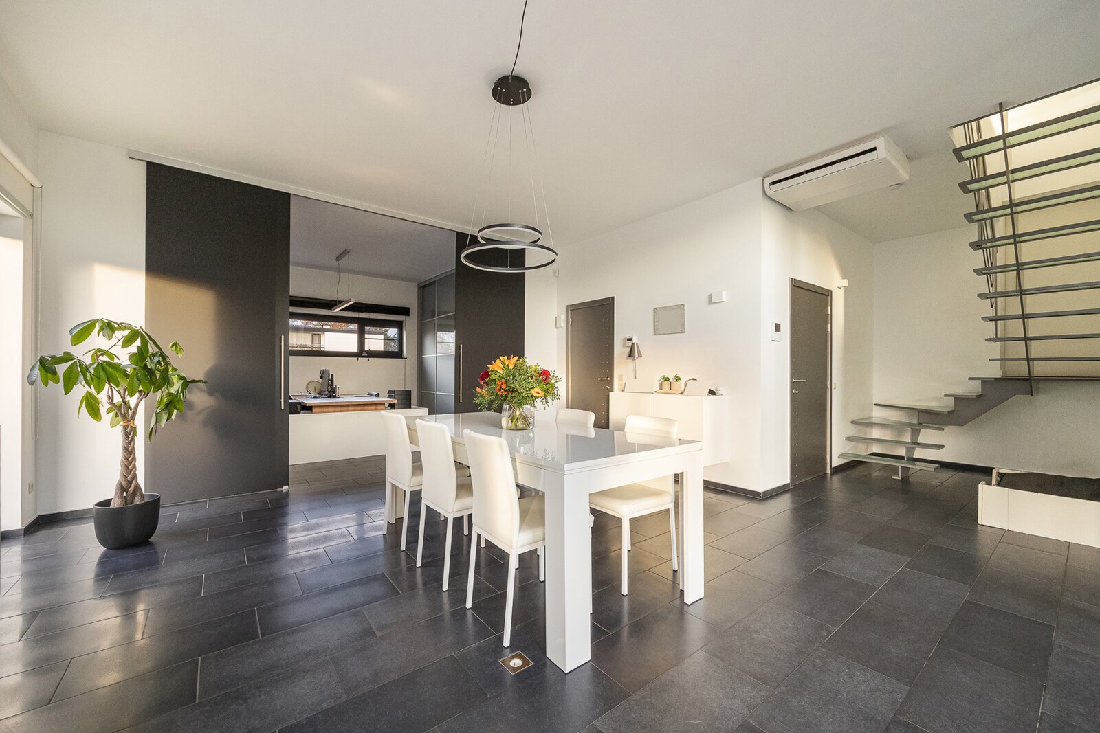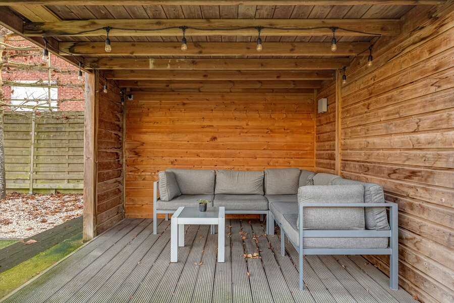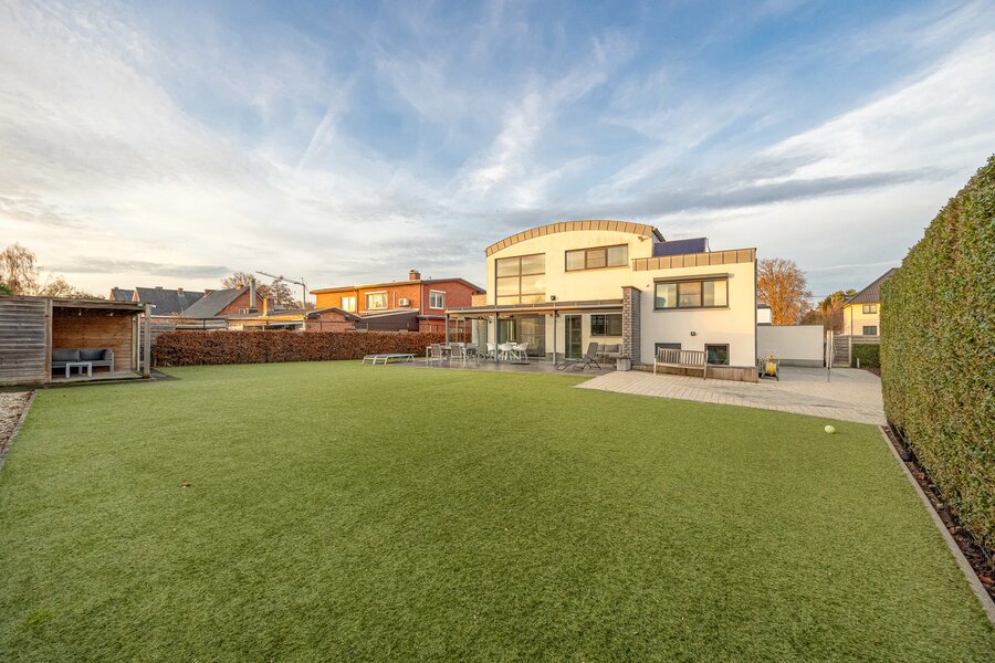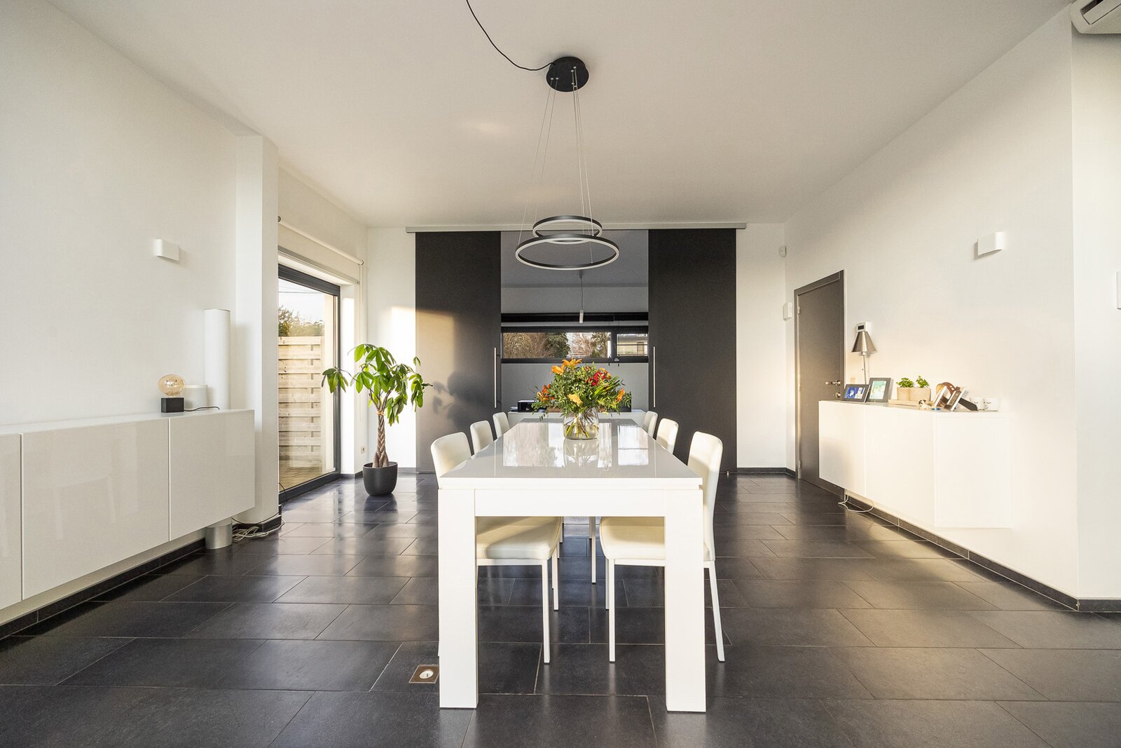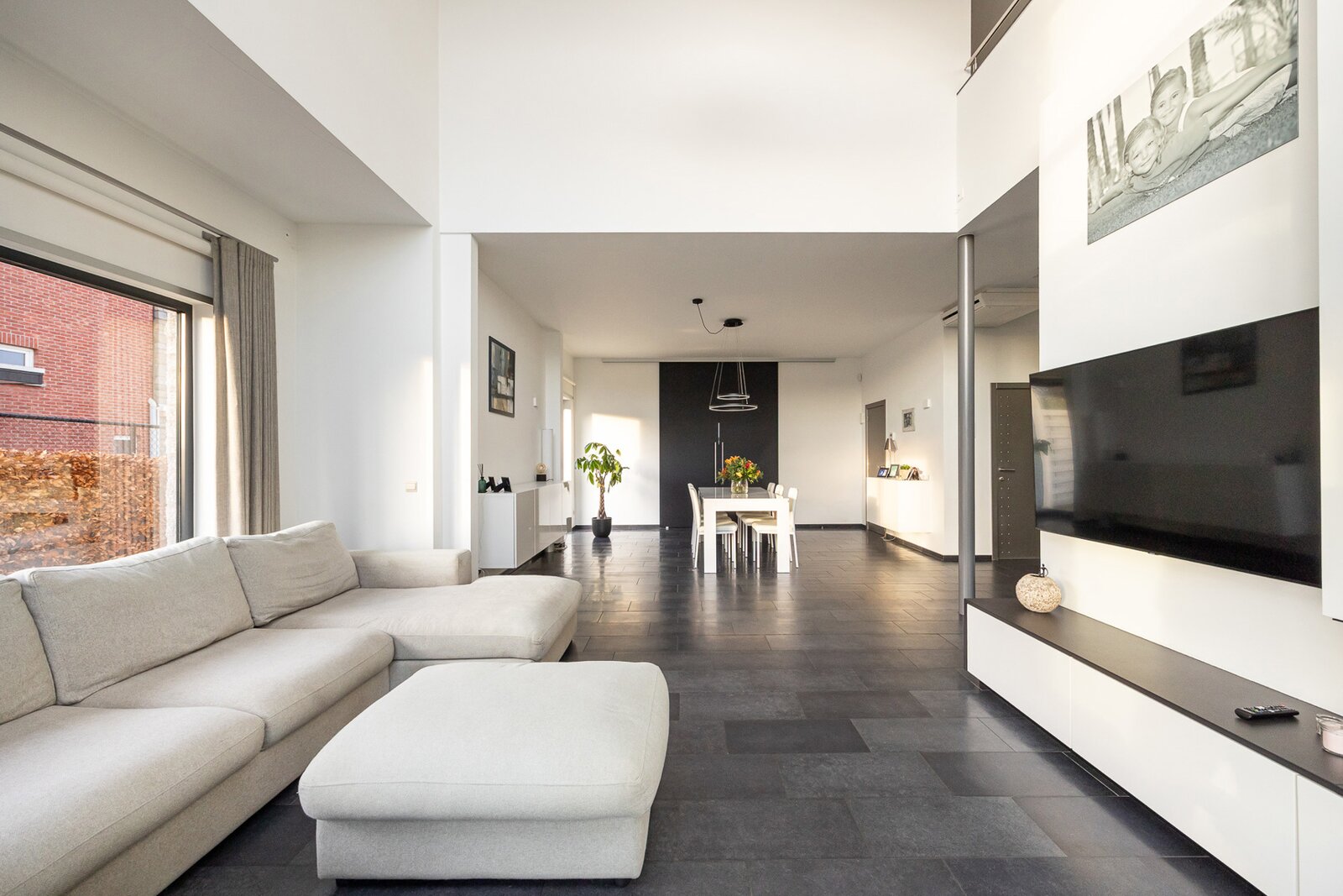 Bij het binnenkomen valt meteen de indrukwekkend hoge en lichtrijke leefruimte op, waar grote raampartijen én een sfeervolle gashaard zorgen voor een warme, uitnodigende atmosfeer. De prachtige open keuken is volledig uitgerust met kwalitatieve A-merk toestellen en vormt het kloppend hart van het huis. Aansluitend aan de leefruimte en met zicht op de tuin ligt een charmante veranda, een heerlijke plek om te genieten van het buitengevoel in alle seizoenen.