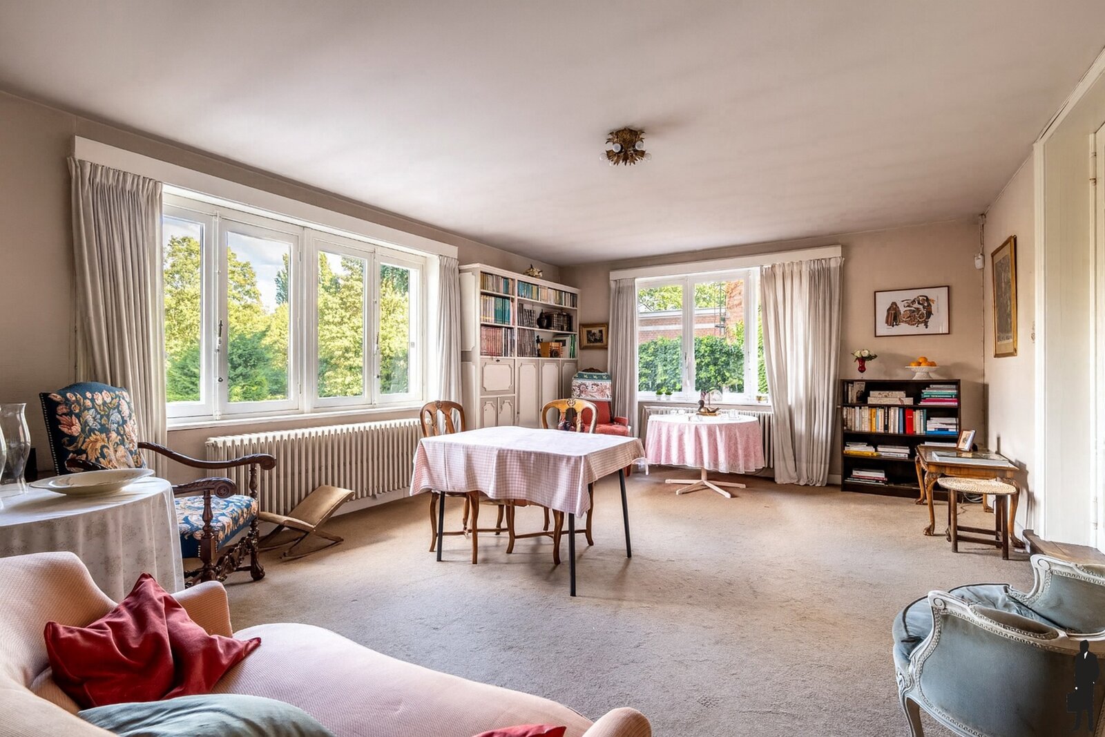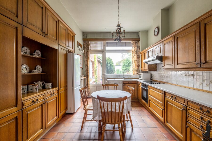 Kelder: De woning beschikt over een zeer ruime kelder met meerdere compartimenten, inclusief een kamer met bar. Vanuit de kelder is er eveneens rechtstreeks toegang tot de tuin.