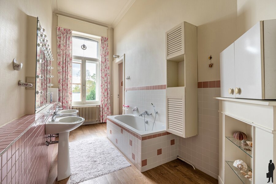 Uniek en imposant herenhuis in eclectische stijl, gelegen in het centrum van Turnhout. Deze royale woning biedt maar liefst 7 à 8 grote (slaap)kamers, een bureauruimte, een prachtige tweedelige leefruimte met zicht op de diepe, natuurlijke stadstuin. Talloze authentieke elementen werden bewaard, zoals de natuurstenen en houten vloeren, hoge plafonds met rozetten en moulures en de originele schouwen. Dankzij de royale volumes en indeling zijn er talloze mogelijkheden: familiewoning, kantoor- of praktijkruimte of opsplitsing in meerdere wooneenheden. De woning bevindt zich nabij de Grote Markt en het Stadspark, met alle voorzieningen binnen wandel- en fietsafstand, en geniet bovendien een uitstekende verbinding met de ring en de E34. Er is mogelijkheid om een aanpalende garage of magazijn bij te kopen.