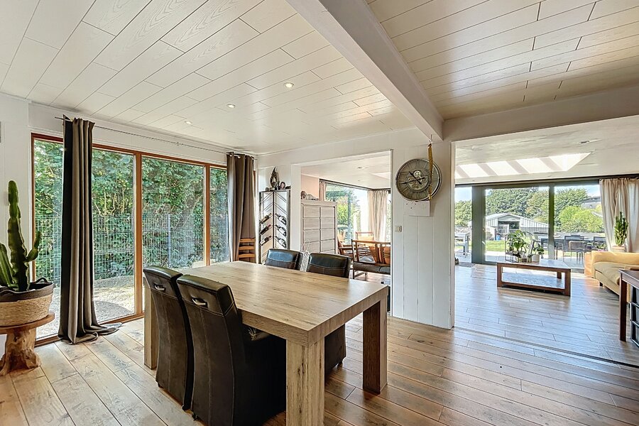 La maison, spacieuse et lumineuse, se compose de 3 chambres à coucher et d’un bureau au rez-de-chaussée pouvant faire office de 4ᵉ chambre. Elle offre deux salles de bain, dont une en rez-de-chaussée, permettant une vie de plain-pied, ainsi qu’une buanderie, un vaste hall de jour et de nuit, et une impressionnante pièce de vie de plus de 80 m² comprenant une cuisine entièrement équipée, deux espaces salon et une salle à manger.