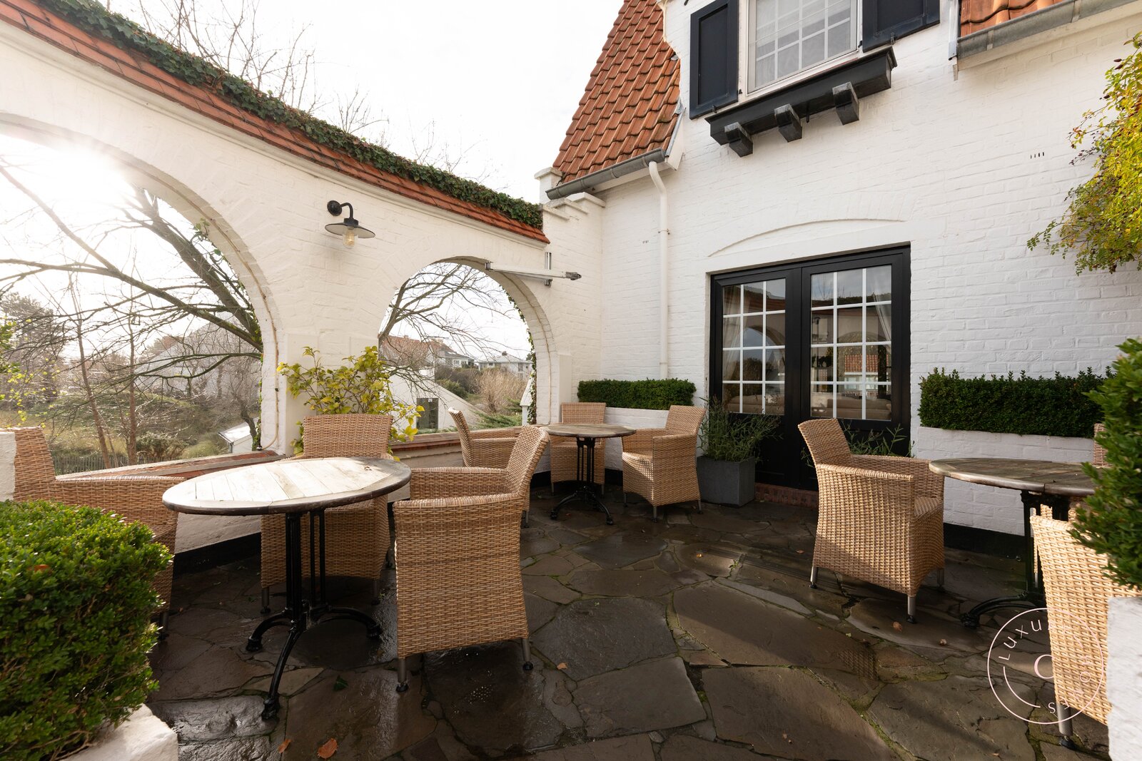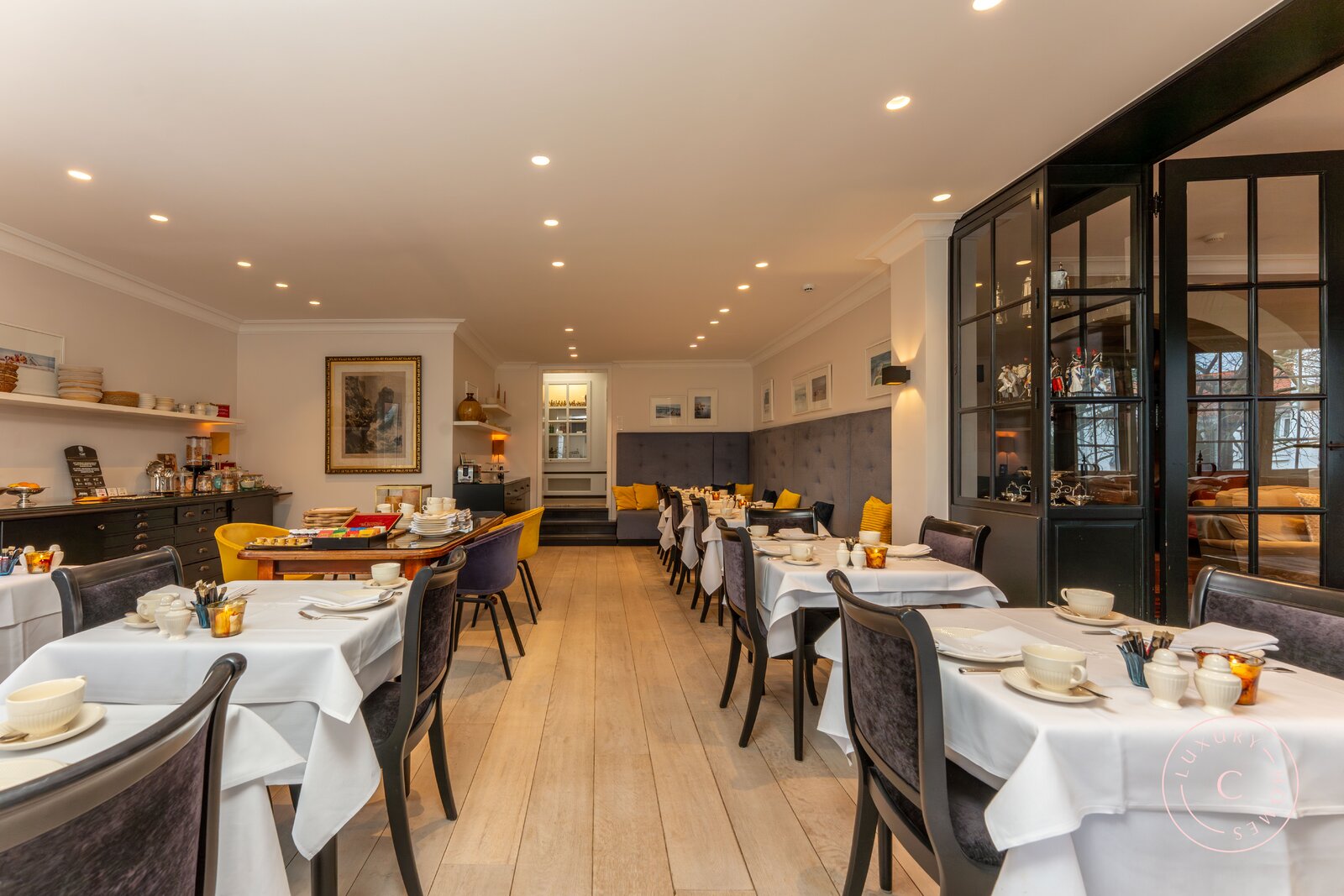 Het hotel straalt een discrete luxe uit die meteen voelbaar is bij binnenkomst. De smaakvolle gemeenschappelijke ruimtes, waaronder een gezellige zithoek met bar, bibliotheek en bureau nodigen uit tot ontspannen en genieten. Buiten vervolledigen een prachtige tuin met ligstoelen, een ruim zonneterras en een verwarmd buitenzwembad het totaalplaatje.