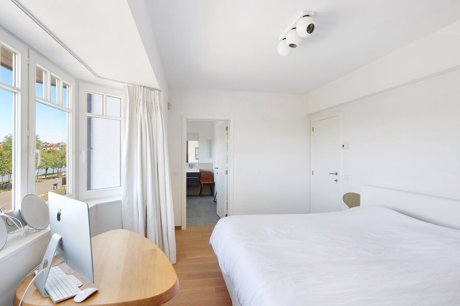 A LOUER EXCLUSIF CHEZ DIRK WILLEMYNS - Magnifique appartement récent, situé au calme dans une petite villarésidence, offrant une vue dégagée sur le lac du Zegemeer et l'hôtel "La Réserve", à quelques pas de la plage et de la mer. Composition : Hall d’entrée avec vestiaire et toilette invités. Séjour et salle à manger avec vue splendide sur le lac. Cuisine ouverte très spacieuse et moderne. Terrasse orientée sud-ouest. Buanderie et débarras. Chambre principale avec dressing et salle de bains complète. Escalier menant à l’étage : deux très grandes chambres, chacune avec son propre dressing et salle de bains. Local à vélos commun, grande cave. Garage box pour deux voitures dans l’immeuble. Possibilité de louer un garage box simple ou double supplémentaire. Visites volontiers après rendez-vous en nos bureaux.