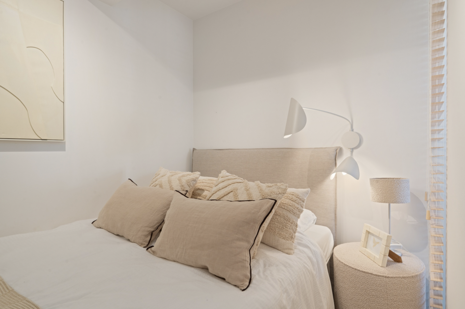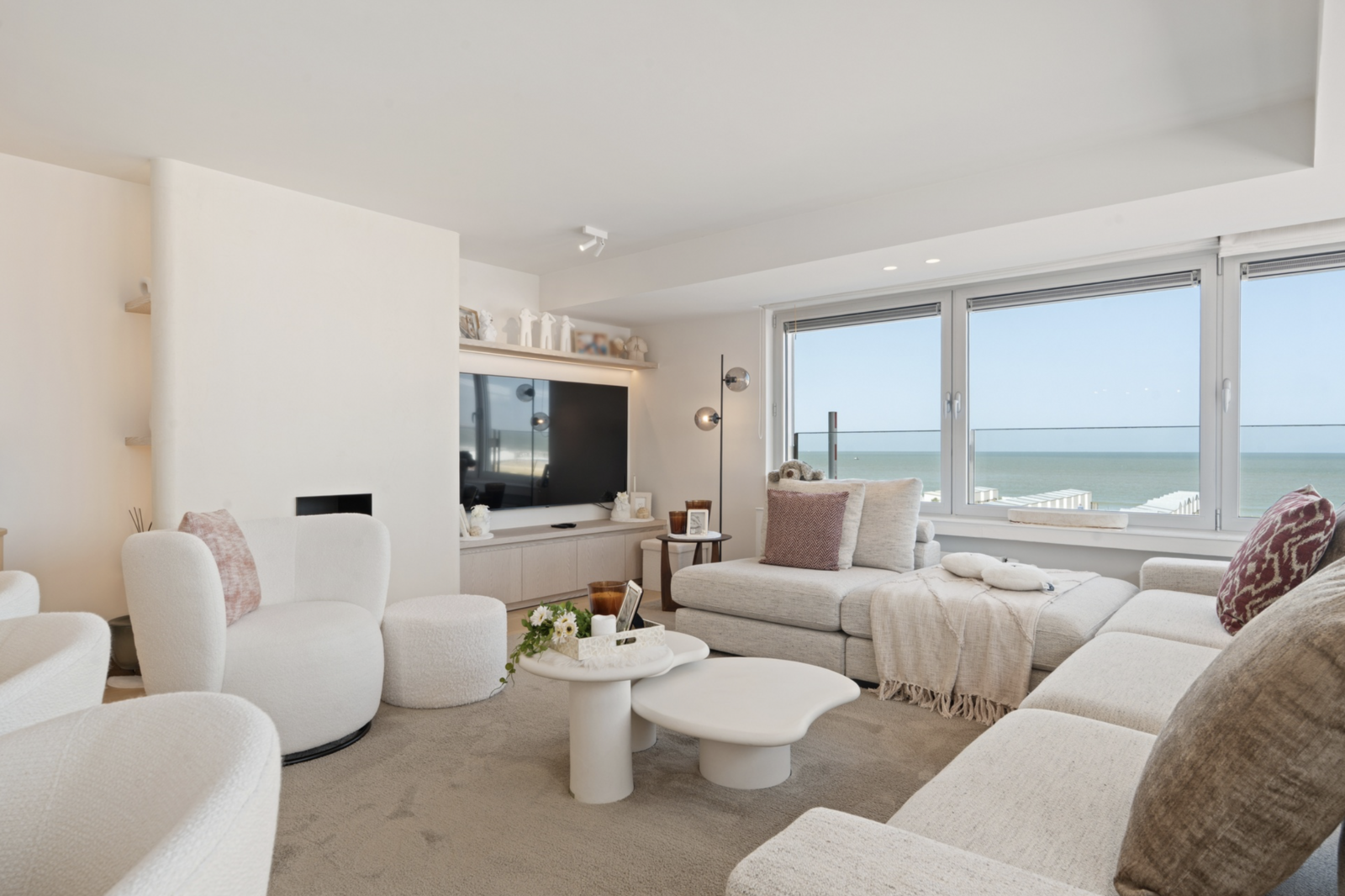 Zonnige, lichtrijke woonkamer met een exclusief zicht op de zee en het strand