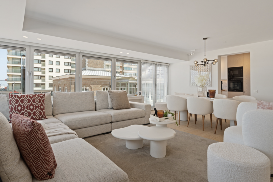 Ontdek dit uitzonderlijk stijlvol hoekappartement met frontaal zeezicht, gelegen op een absolute toplocatie op de Zeedijk te Knokke.