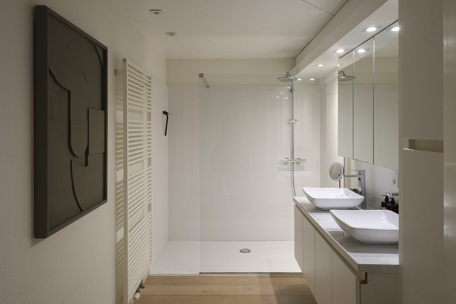 Il y a également deux autres chambres à coucher, chacune avec son propre espace bureau et une salle de bains commune.