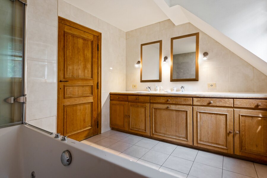 Verdieping: overloop met toegang tot 5 slaapkamers, 3 badkamers waarvan 1 met whirlpool en een apart toilet op de gang.