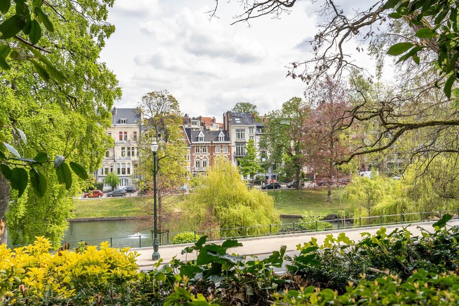 Idéalement situé face au Jardin du Roi, dans un immeuble de style moderniste, appartement meublé d’une superficie brute selon PEB de ± 172 m² offrant trois chambres et un jardin de ± 160 m² avec une vue dégagée sur les Etangs d'Ixelles.