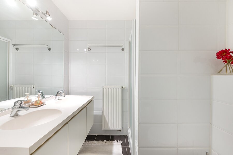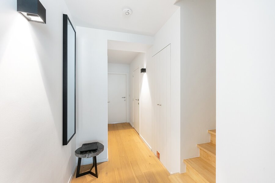 Appartement duplex prêt à emménager avec deux chambres et terrasse, idéalement situé à proximité de la place Rubens (30 mètres) et de la plage Albertstrand. L’appartement est aménagé avec goût et se trouve dans un bel immeuble agréable (année de construction 2004). Composition: hall d’entrée avec toilette séparée, parquet au sol, porte en fer forgé menant au séjour lumineux avec cuisine ouverte entièrement équipée, finie en marbre brun et placage chêne. Débarras. Terrace à l’avant avec vue latérale sur la mer et la place Rubens. Au niveau de vie se trouve la chambre principale avec salle de bains séparée (douche avec lavabo et raccordement pour machine à laver). À l’étage supérieur, il y a une deuxième chambre spacieuse avec terrasse arrière ainsi qu’une salle de douche séparée et des toilettes. Local à vélos et cave privative.