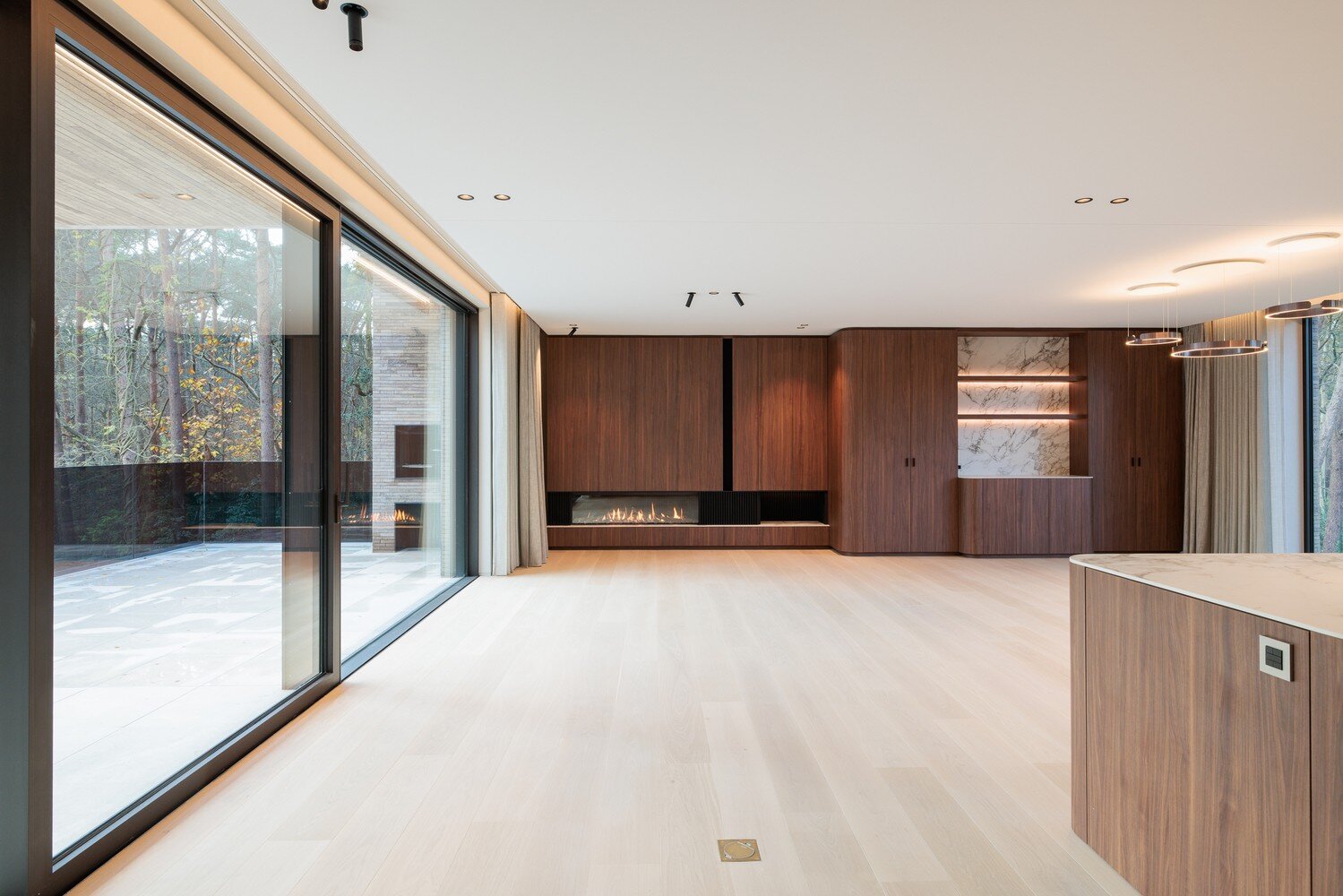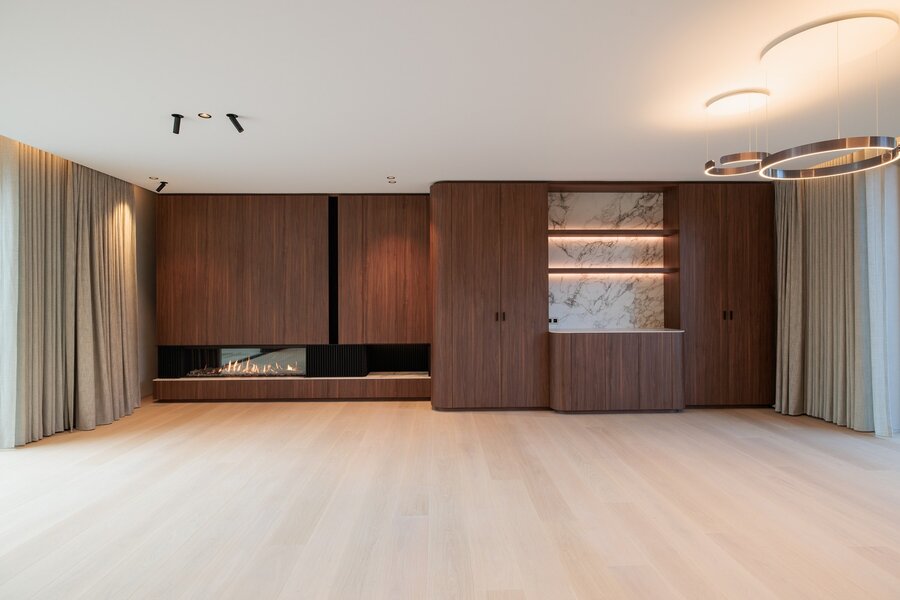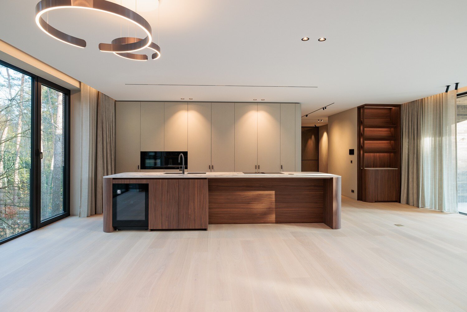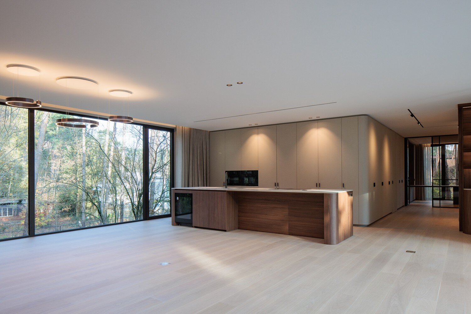 Dit prachtige penthouse van 240 m² combineert luxe, ruimte en comfort op een stijlvolle en doordachte manier. Gelegen op de eerste verdieping van Residentie Caelum, één van de vier exclusieve villa-appartementen, biedt dit villa-appartement een royale leefruimte met elegante haardwand en een prachtige open keuken, volledig uitgerust met Miele-toestellen, Bora-kookplaat en Quooker-kraan. De keuken loopt naadloos over in de op maat gemaakte kastenwand die zich uitstrekt tot in het bureau.