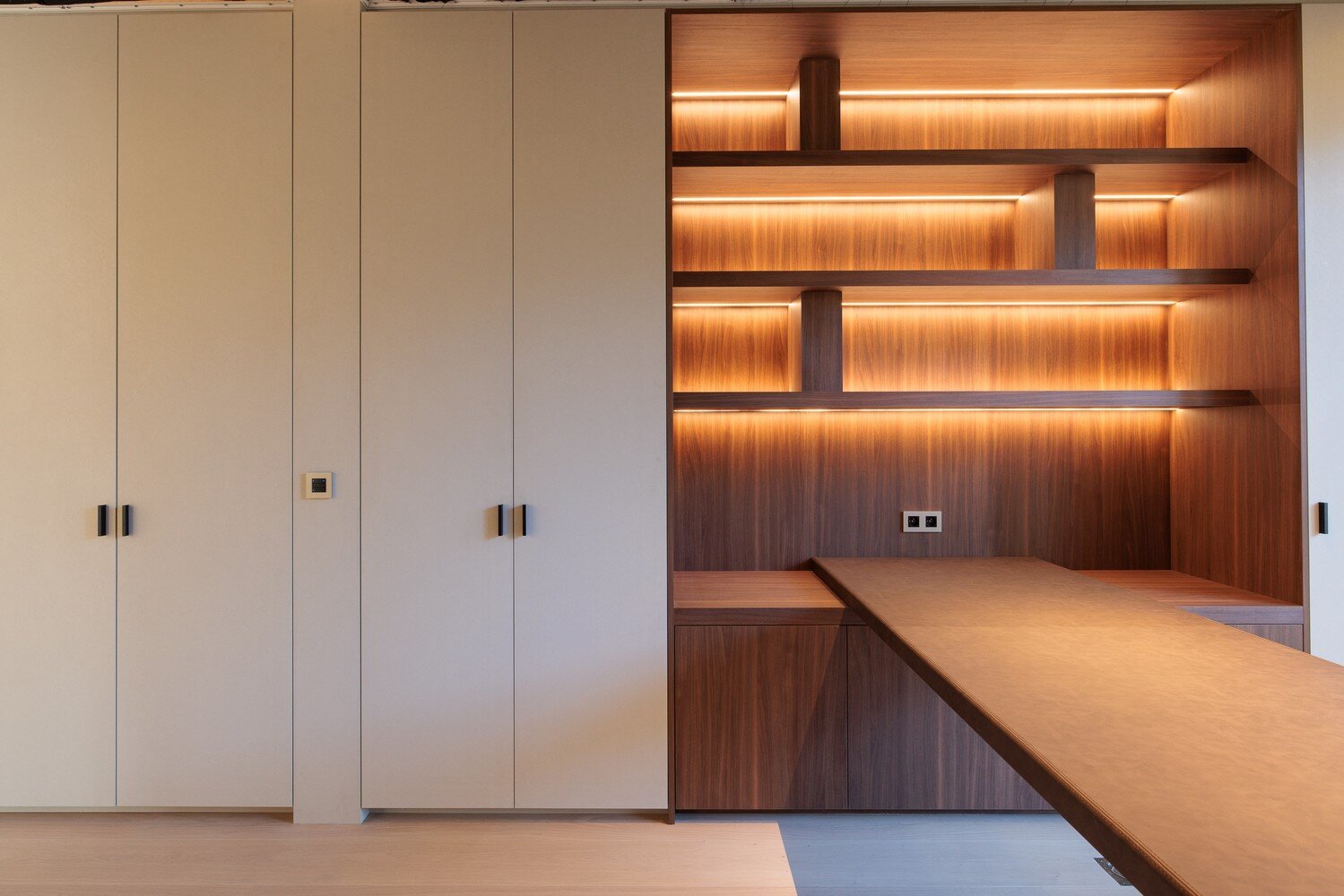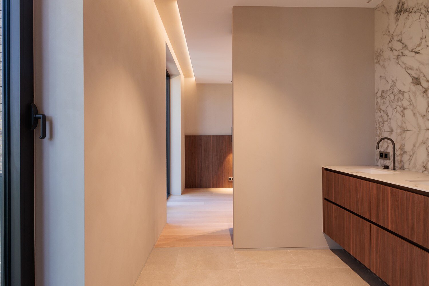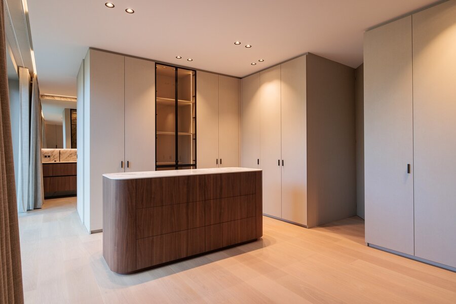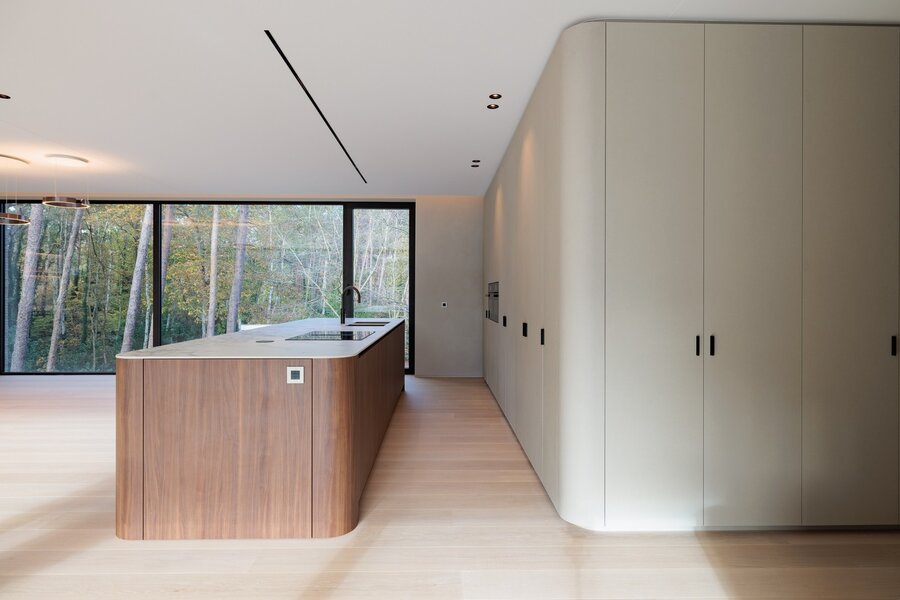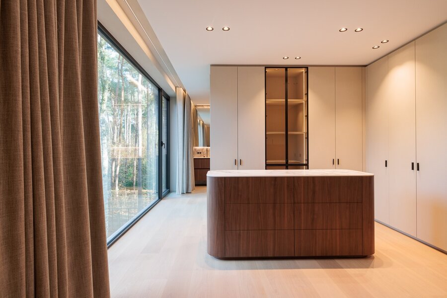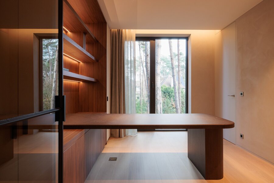 Dit prachtige penthouse van 240 m² combineert luxe, ruimte en comfort op een stijlvolle en doordachte manier. Gelegen op de eerste verdieping van Residentie Caelum, één van de vier exclusieve villa-appartementen, biedt dit villa-appartement een royale leefruimte met elegante haardwand en een prachtige open keuken, volledig uitgerust met Miele-toestellen, Bora-kookplaat en Quooker-kraan. De keuken loopt naadloos over in de op maat gemaakte kastenwand die zich uitstrekt tot in het bureau.