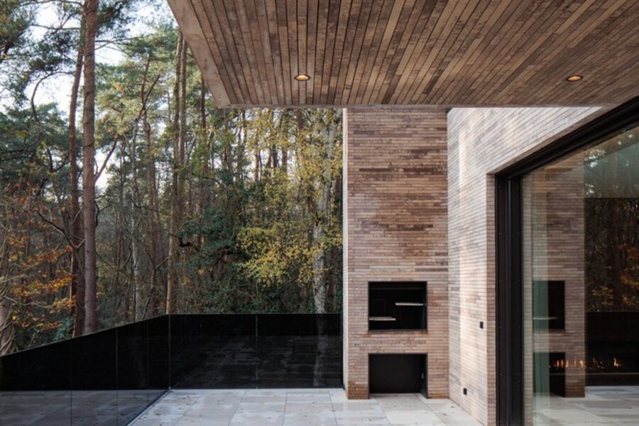 Vanuit de leefruimte heeft u toegang tot het deels overdekte terras van 44 m², voorzien van ingebouwde buitenhaard, waar u in alle rust geniet van de groene omgeving en de centrale waterpartij. Het terras is de ideale plek voor ontspanning of informele ontmoetingen met vrienden en familie.