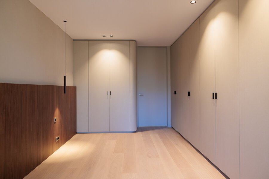 Dit exclusieve penthouse wordt volledig instapklaar opgeleverd: geschilderd en voorzien van maatkasten, verlichting en gordijnen. De verplicht mee aan te kopen ondergrondse dubbele garagebox en een private kelderberging (samen € 95.000) maken het aanbod compleet.