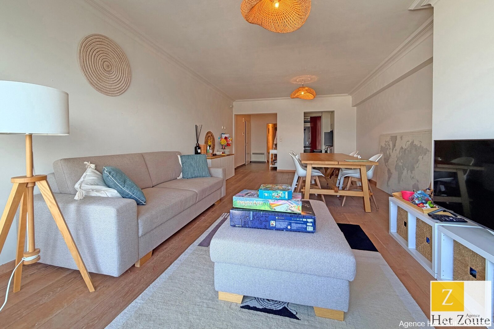 Cet appartement soigné et non meublé offre une vue imprenable sur la mer et bénéficie d’un emplacement idéal sur la digue, à deux pas de la place Albert. En entrant dans l’appartement, vous accédez à un hall d’entrée avec toilettes invités et vestiaire. Le séjour lumineux offre une vue directe sur la mer et est relié à une cuisine entièrement équipée. L’appartement comprend trois chambres, dont une avec salle de douche privative. Une salle de bains séparée est équipée d’un lavabo, de toilettes et d’une baignoire. Un espace de rangement pratique avec raccordement pour machine à laver ajoute au confort. Une cave est également disponible, ainsi qu’un local à vélos facilement accessible au rez-de-chaussée. Les charges communes sont comprises.