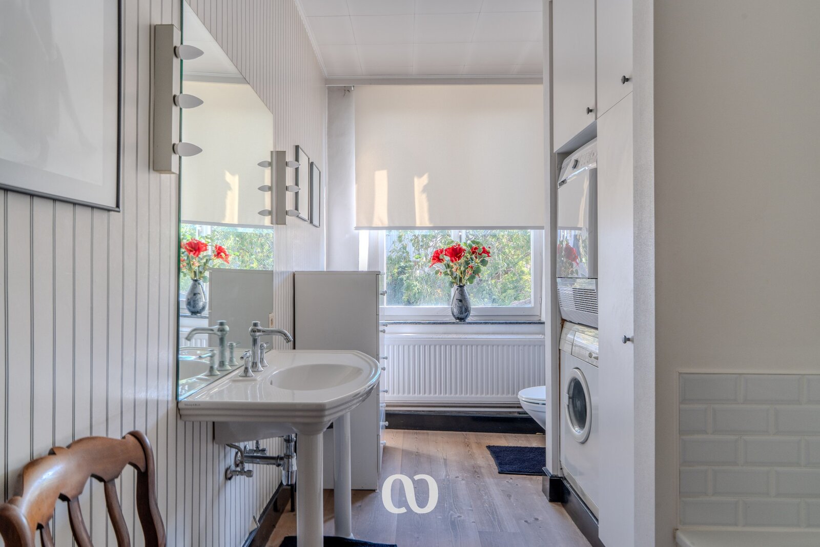 À l'intérieur, vous découvrirez un hall d'entrée impressionnant, un grand salon avec de hauts plafonds, un fumoir ou un salon de lecture confortable, un bureau au rez-de-chaussée, une cuisine spacieuse, quatre chambres et deux salles de bains. Au premier étage, il y a également un espace de vie supplémentaire, parfait comme bureau, espace de jeu ou salle de télévision.