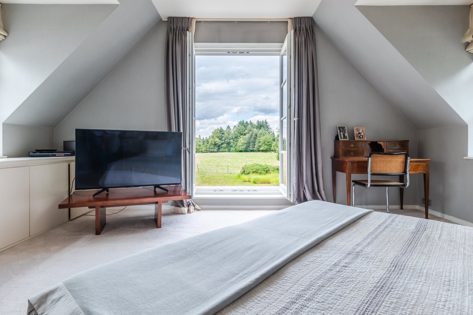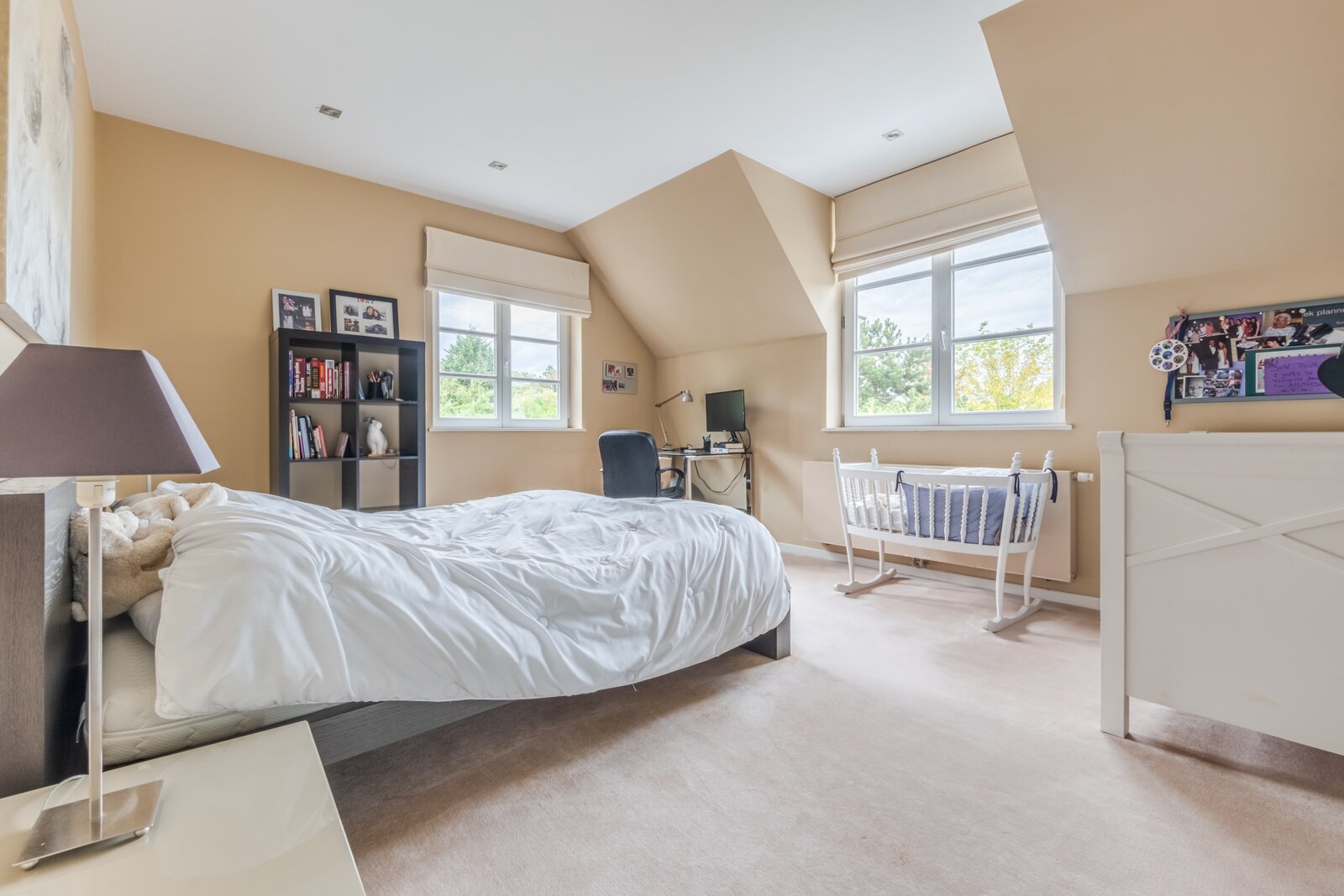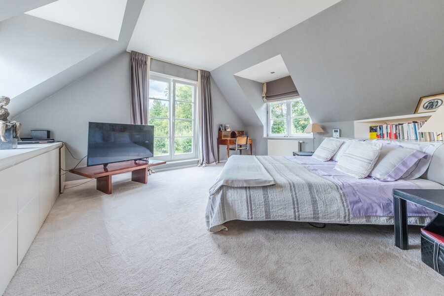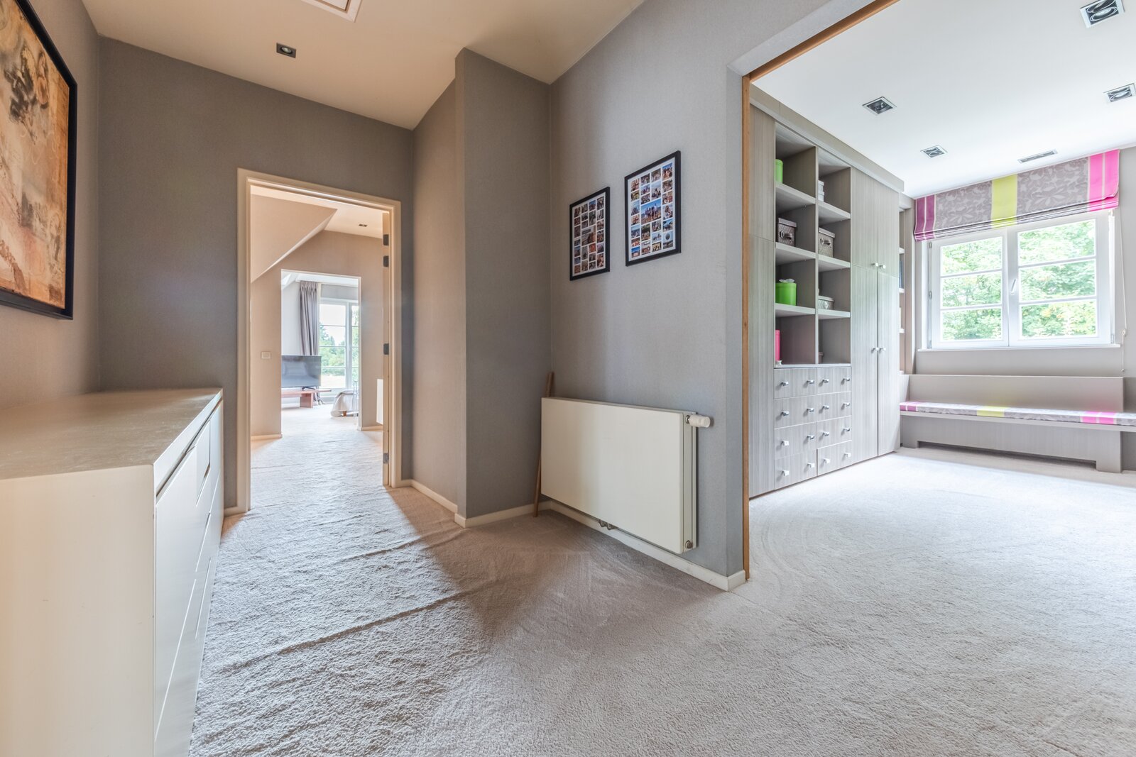 À l’étage, le hall de nuit, desservant plusieurs zones, vous conduit à l’aile des enfants, comprenant un hall avec placards, deux très grandes chambres, une salle de bains, une salle de douche et des toilettes séparées. Le hall de nuit mène également à une troisième chambre ou bureau avec salle de douche en suite, ainsi qu’à l’espace parental, composé d’un hall avec placards, de deux dressings séparés, d’une salle de bains complète et d’une chambre principale avec vue.