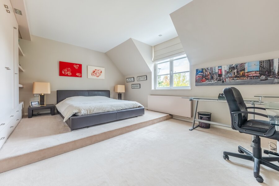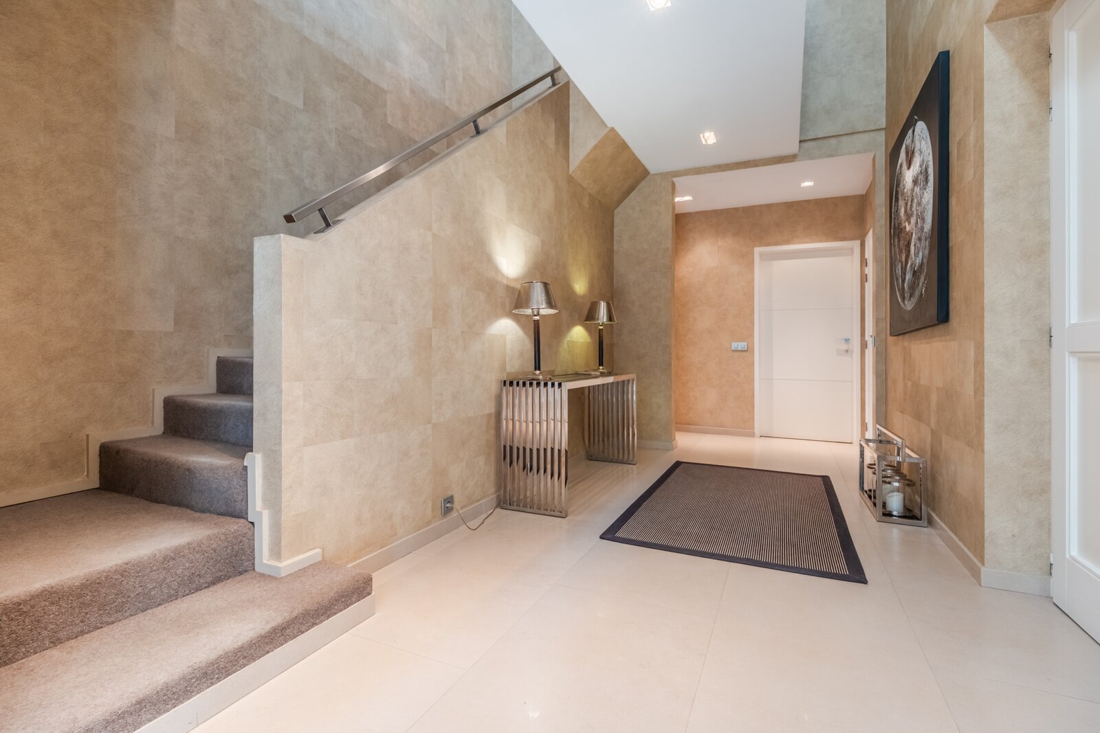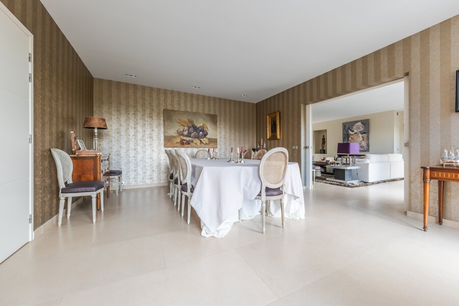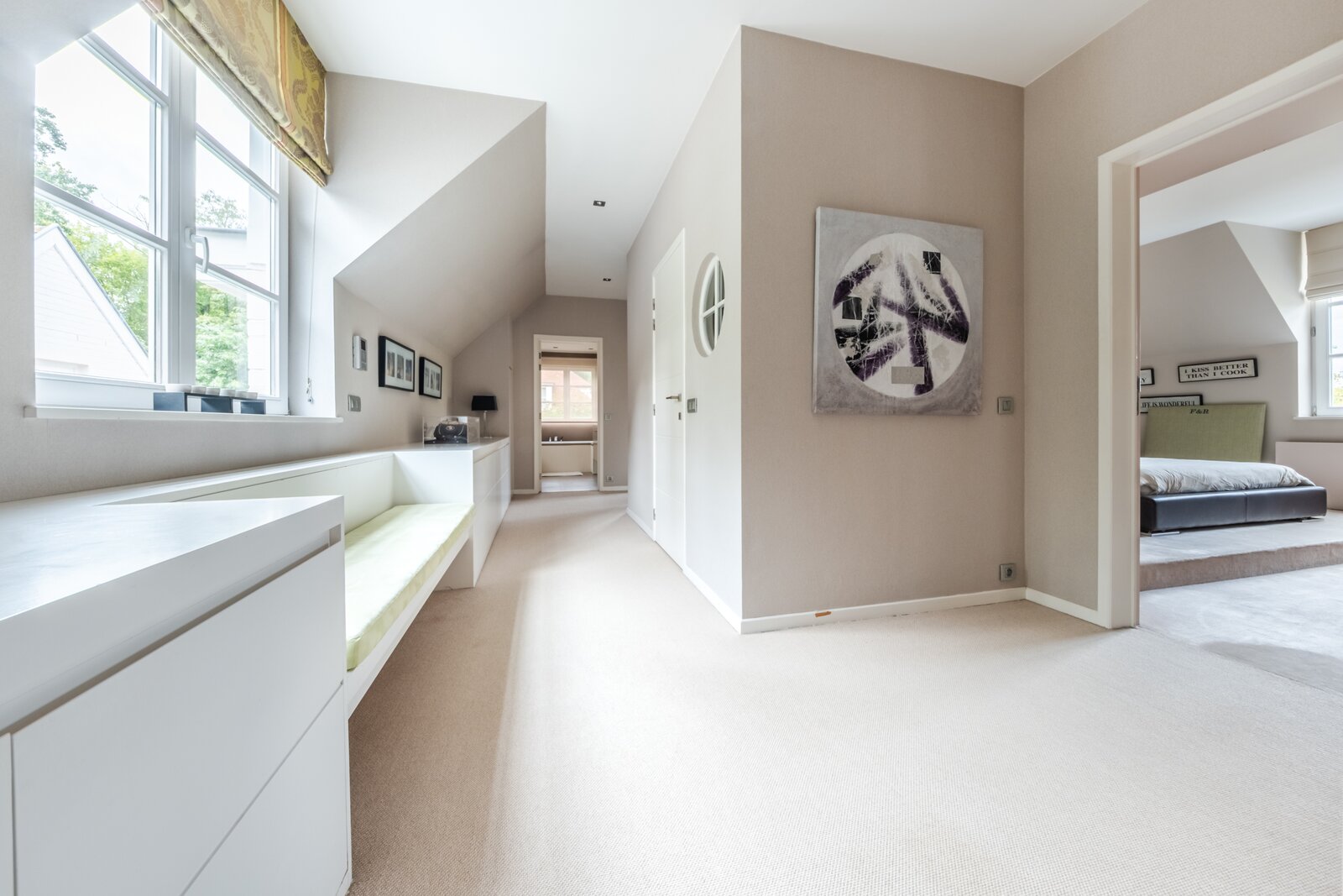 À l’étage, le hall de nuit, desservant plusieurs zones, vous conduit à l’aile des enfants, comprenant un hall avec placards, deux très grandes chambres, une salle de bains, une salle de douche et des toilettes séparées. Le hall de nuit mène également à une troisième chambre ou bureau avec salle de douche en suite, ainsi qu’à l’espace parental, composé d’un hall avec placards, de deux dressings séparés, d’une salle de bains complète et d’une chambre principale avec vue.