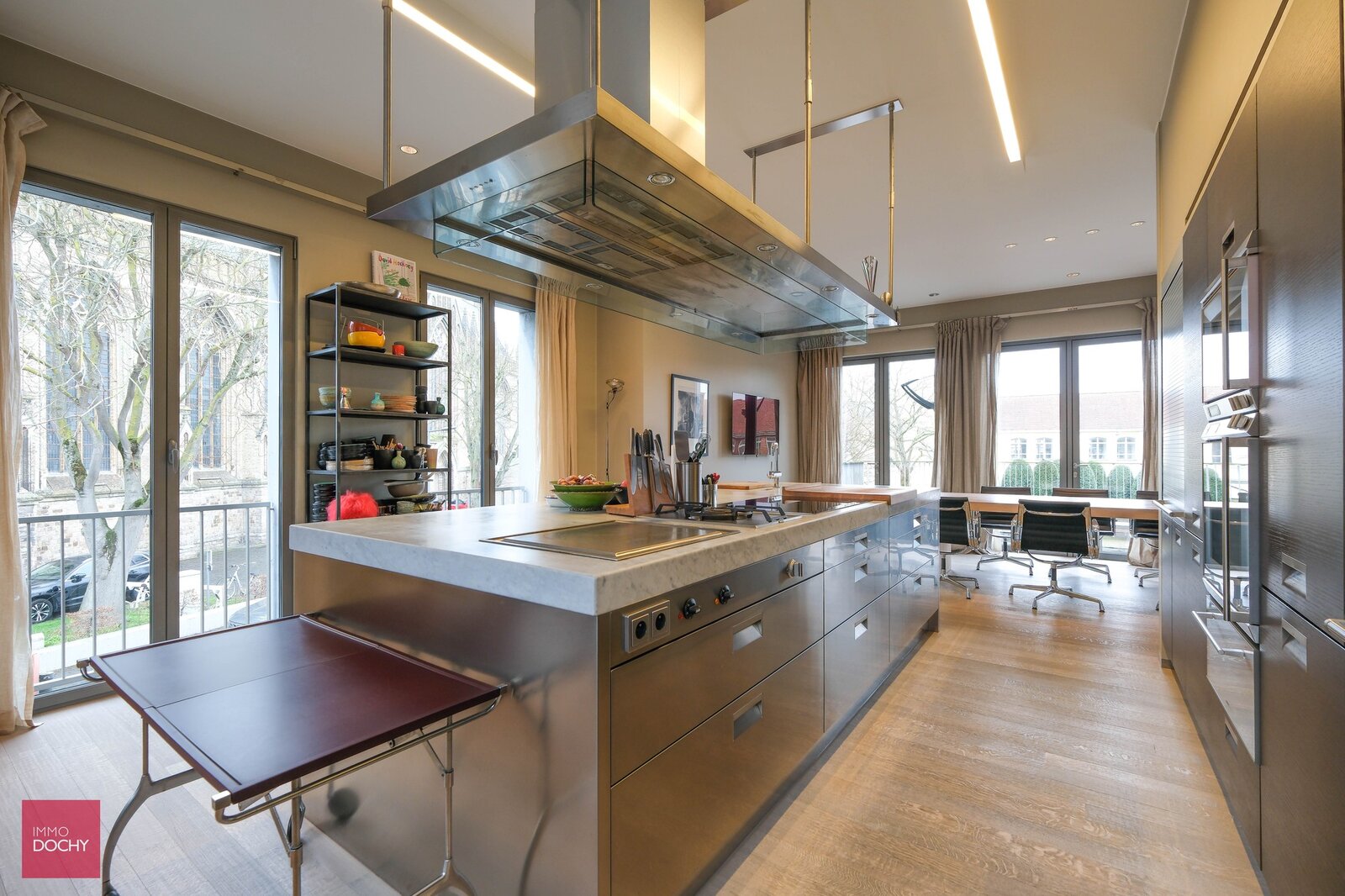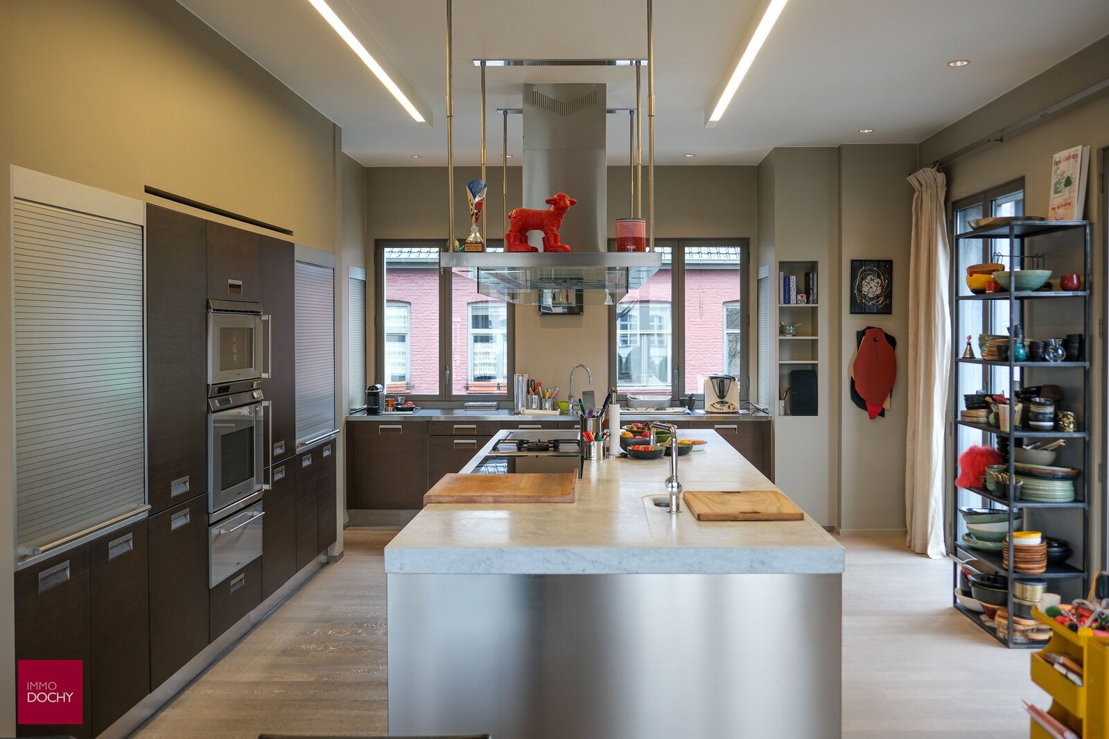 Unieke centrumwoning of appartement met kantoren, vernieuwd door archtect Xavier Donck. Bestaande uit: