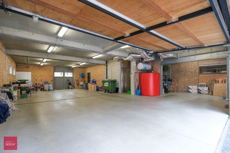 Gelijkvloers: Inkomhal, verschillende kantoorruimtes met vergaderzalen en archief (ca 100m² in totaal - op te frissen), grote garage voor ca 5 wagens met automatische poort, zonnige tuin, zwemvijver, poolhouse en authentieke serre.
