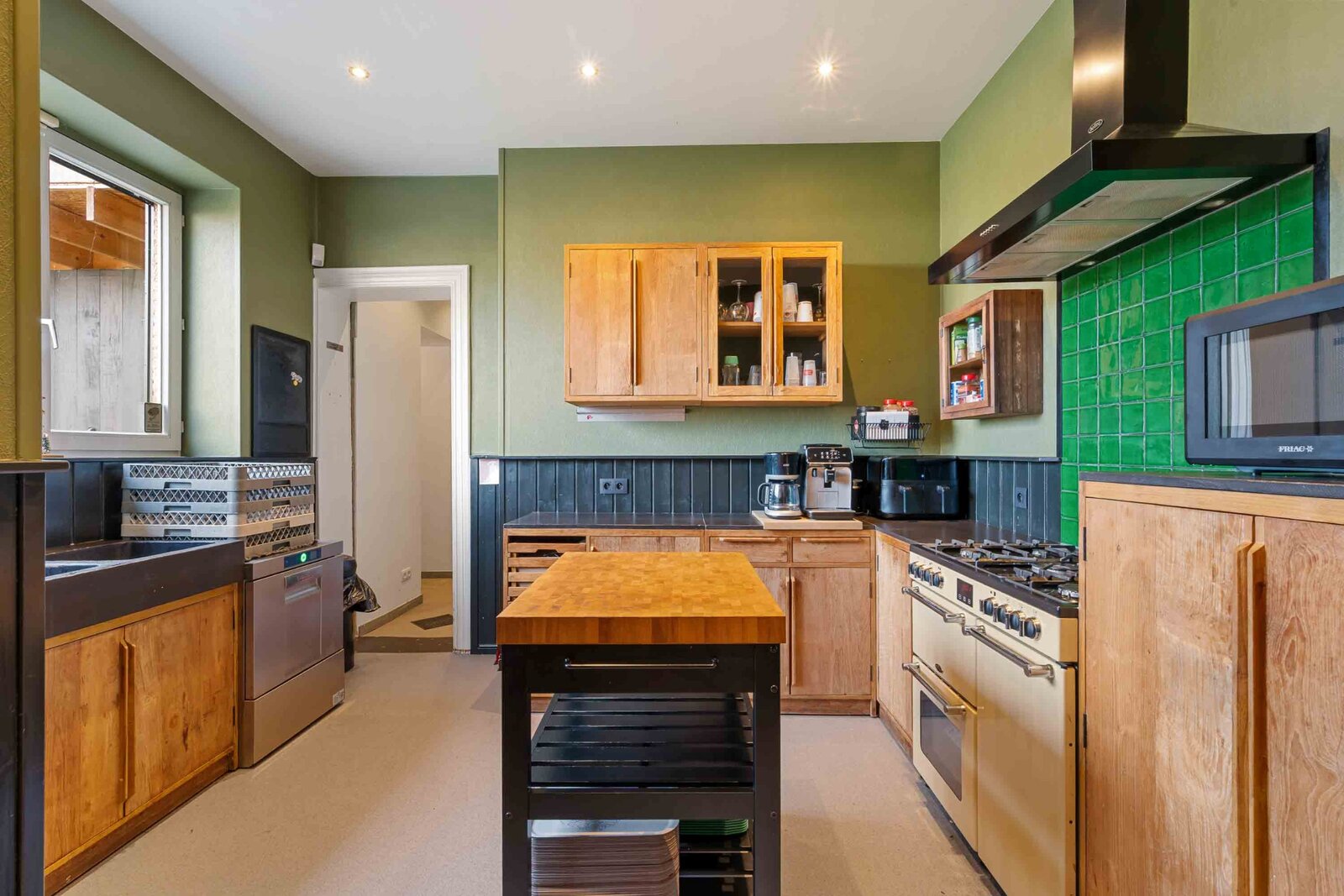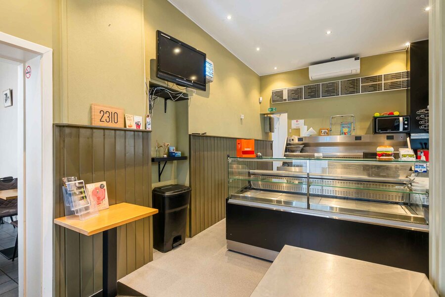 De commerciële ruimte, bereikbaar via zowel de keuken als een aparte ingang, is momenteel ingericht als frituur maar leent zich perfect voor tal van andere invullingen zoals dokters- of tandartspraktijk, kantoor, kleinhandel of horeca. Deze ruimte omvat: